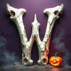 The letter W spooky character skull Halloween Discover our Spooky Skull Alphabet! Each character is a 3D masterpiece of bone and shadow. Perfect for Halloween designs, gothic projects, or unique wall art. 💀✨ Click to download this high-resolution character and elevate your creations with haunting elegance!