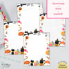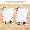 Halloween Cat Pumpkin Mushroom Stationery Paper Printable, Set of 4