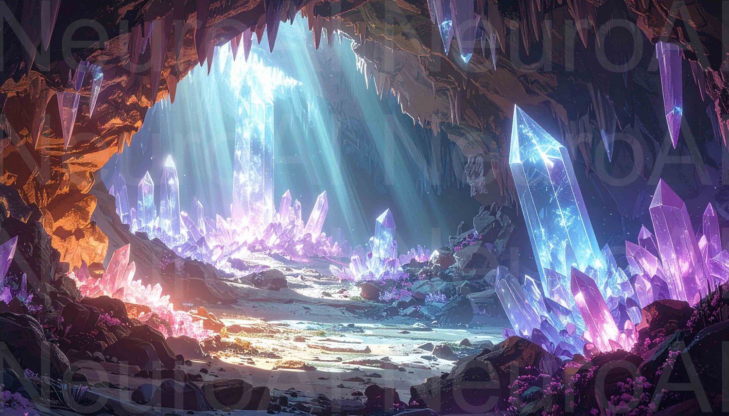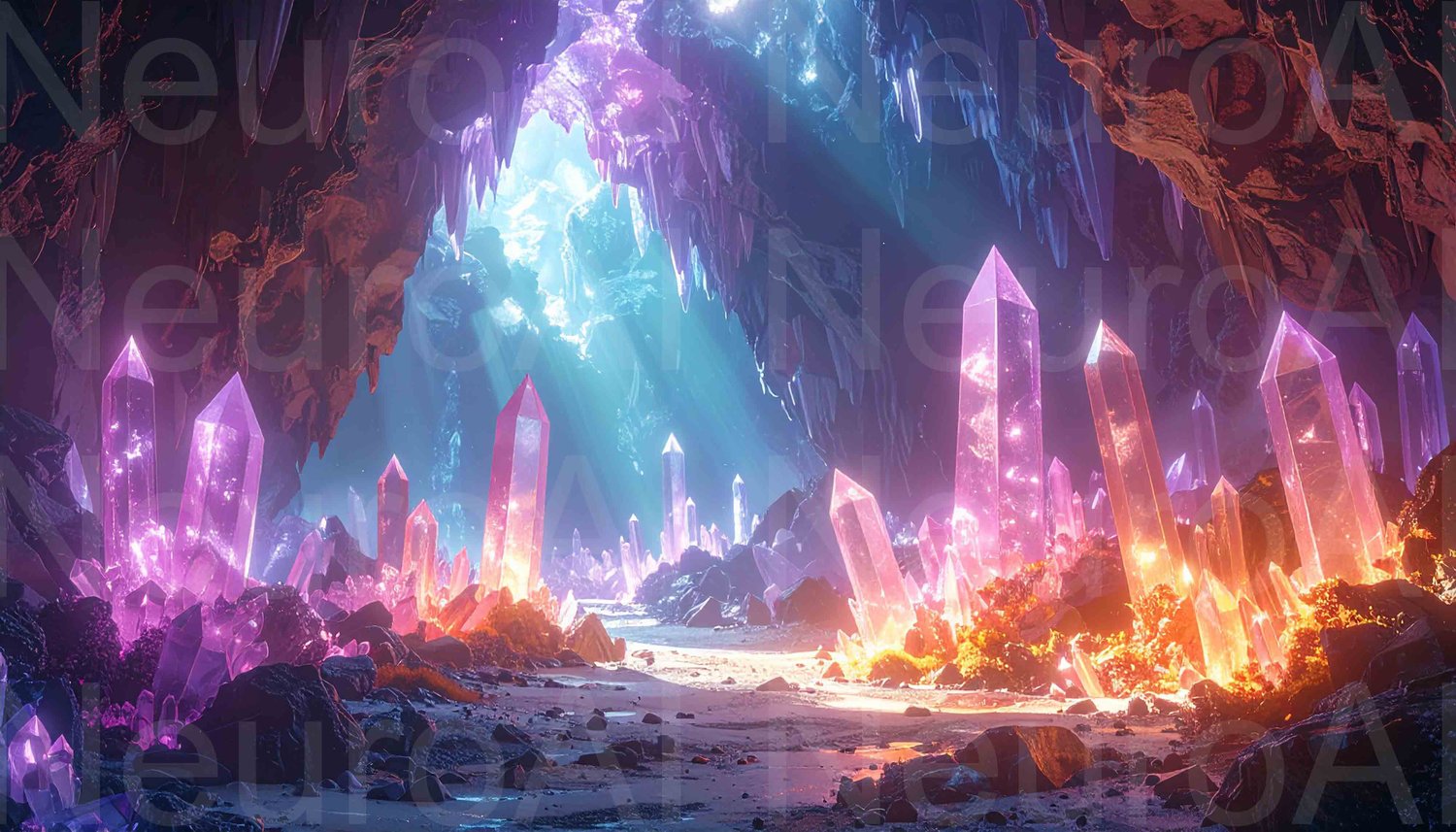Enchanting crystal cave glows with magical light