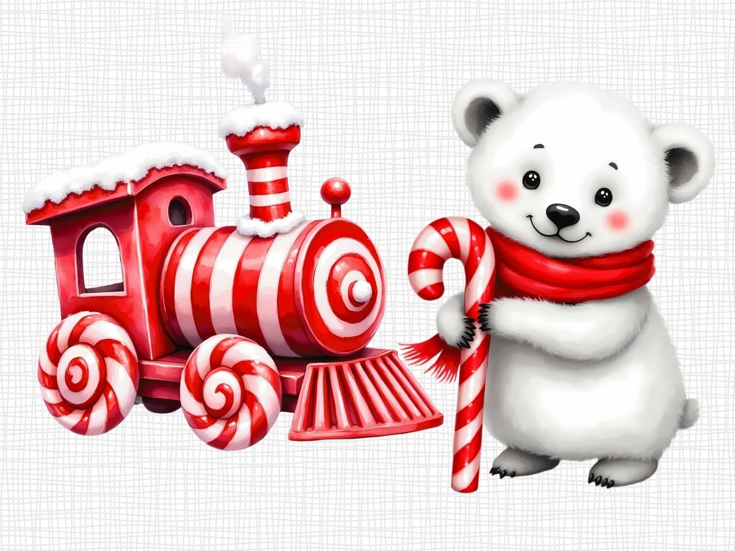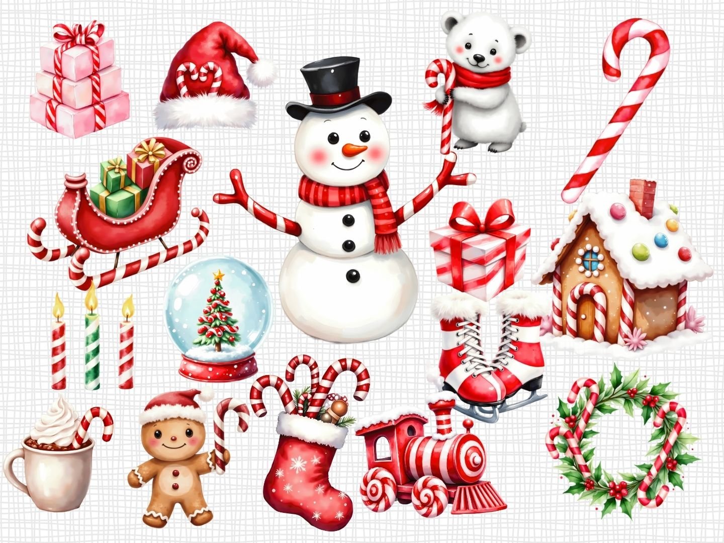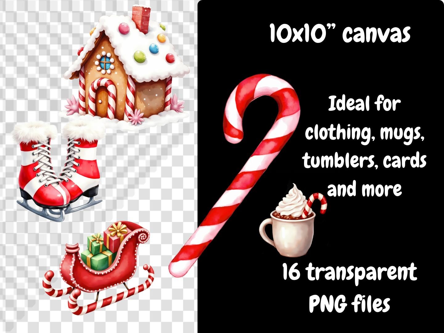 Watercolour Candy Cane Christmas clipart. 16 individual transparent PNG files. Everything you need for your Christmas designs! Sublimation, print, DTF, UVDTF. Christmas PNG.