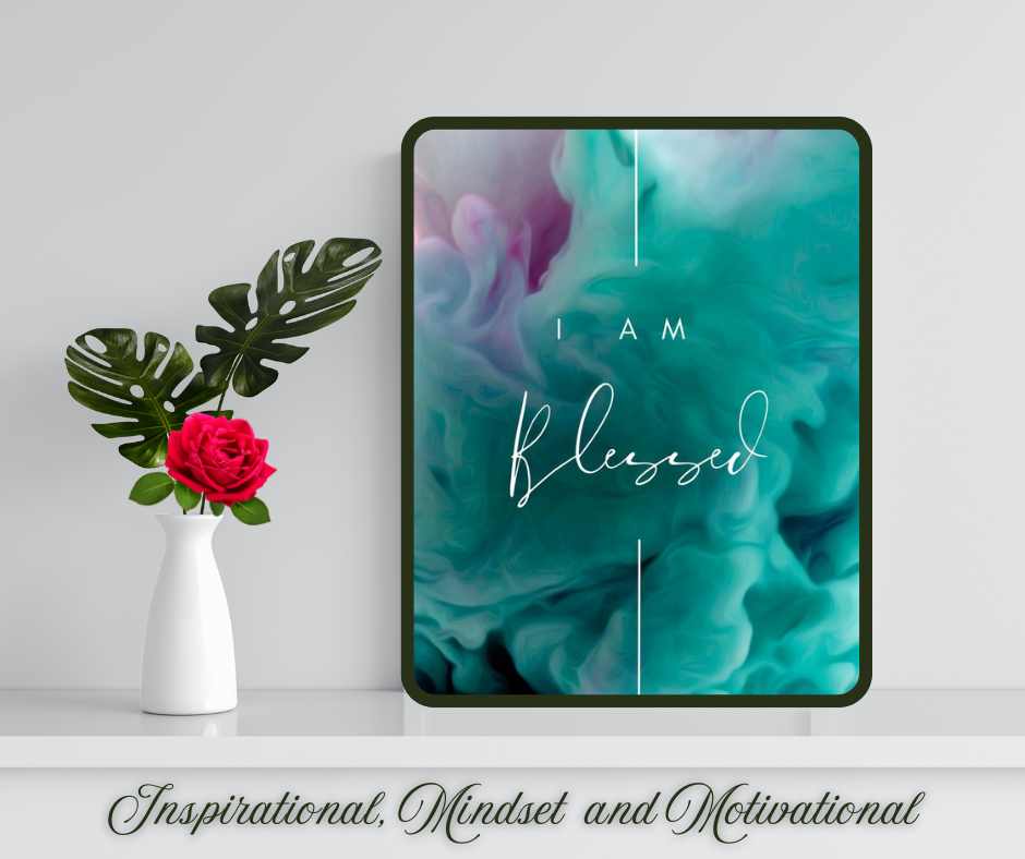 Elevate your space and mindset with this "I Am Blessed" Inspirational Digital Art Print. Featuring a mesmerizing swirl of teal, purple, and black hues, this artwork embodies serenity, gratitude, and positivity. The elegant typography adds a touch of sophistication, making it perfect for home decor, phone wallpapers, journaling, or social media inspiration.