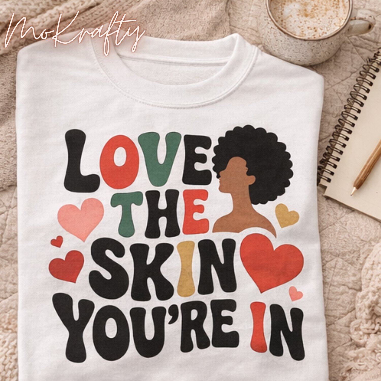 The “Love the Skin You’re In” design is a powerful self-love statement celebrating confidence, melanin, and inner beauty. Perfect for apparel, accessories, and affirmation merch, this high-quality PNG & SVG set is ready for your custom creations.