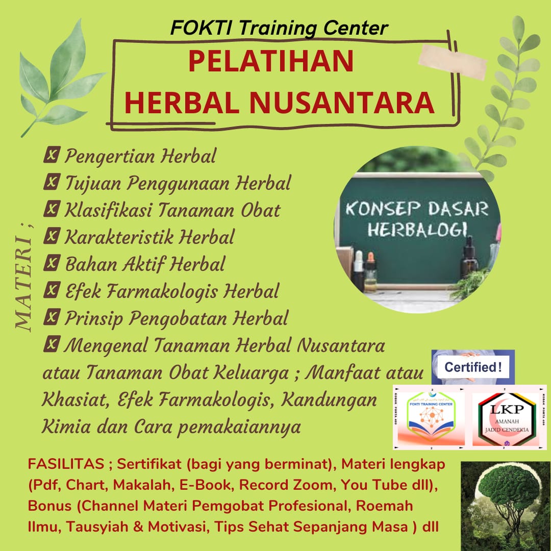 Pelatihan herbalogi basic membahas dasar-dasar herbal nusantara dan herbal thibbun nabawi serta ttdidionsl chinese medicines
