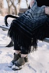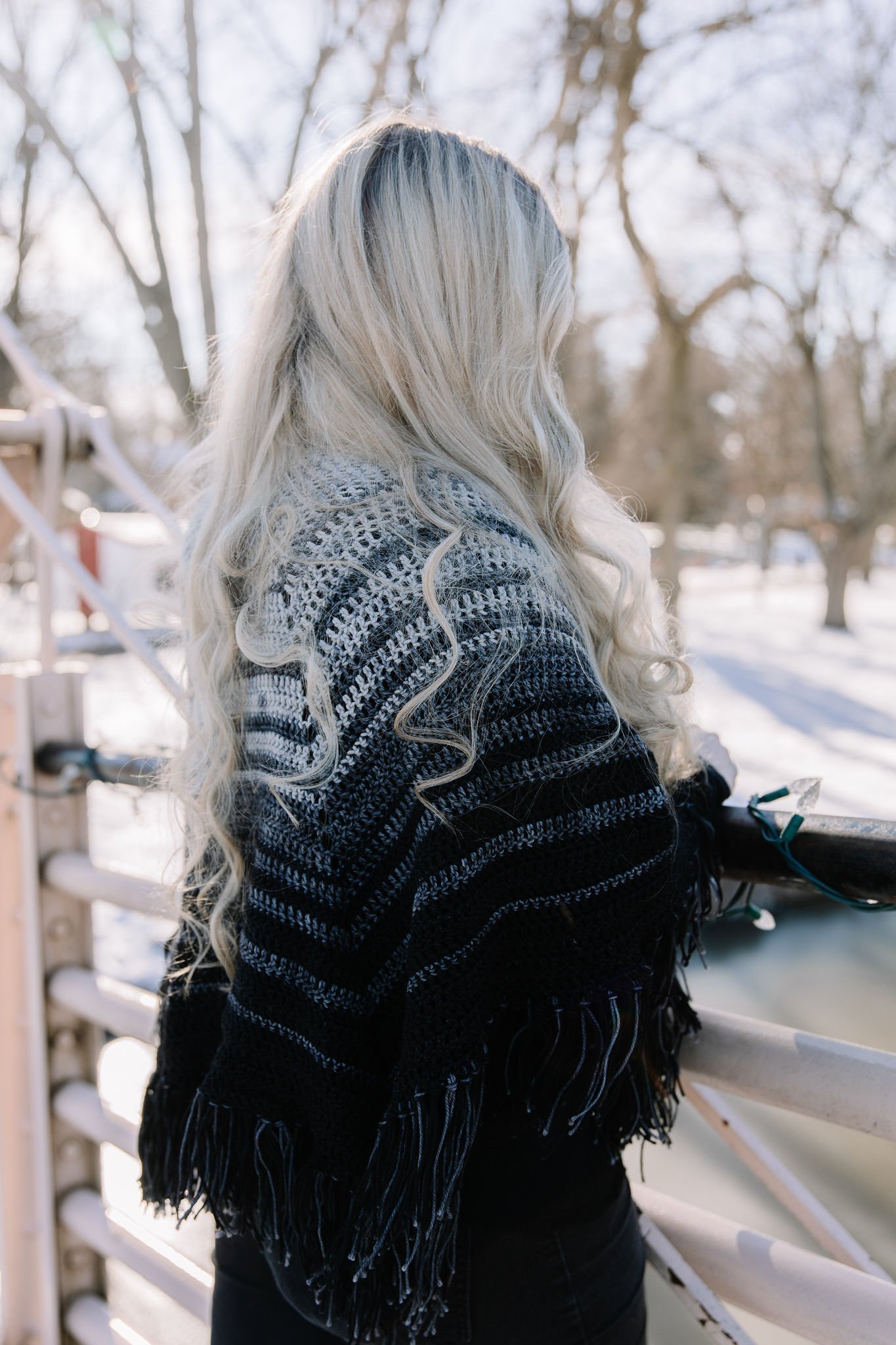 This shawl is crocheted from the top-down using double crochet and single crochet stitches, increasing in 5 sections, and finishing with a gorgeous fringe.