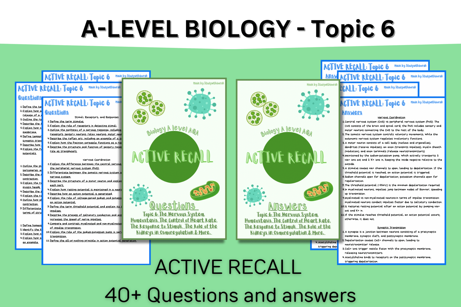 Struggling with neurones, homeostasis, and muscle contraction? This active recall resource features 40+ exam-style questions to help you master Topic 6, including: