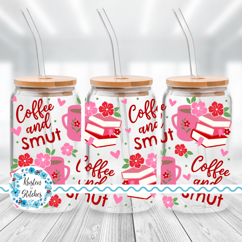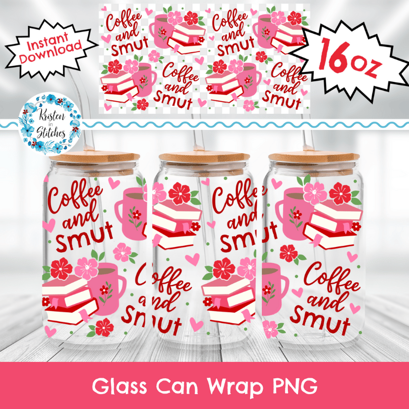 Coffee and Smut Glass Can Wrap Transparent Cup PNG, Spicy Book Club