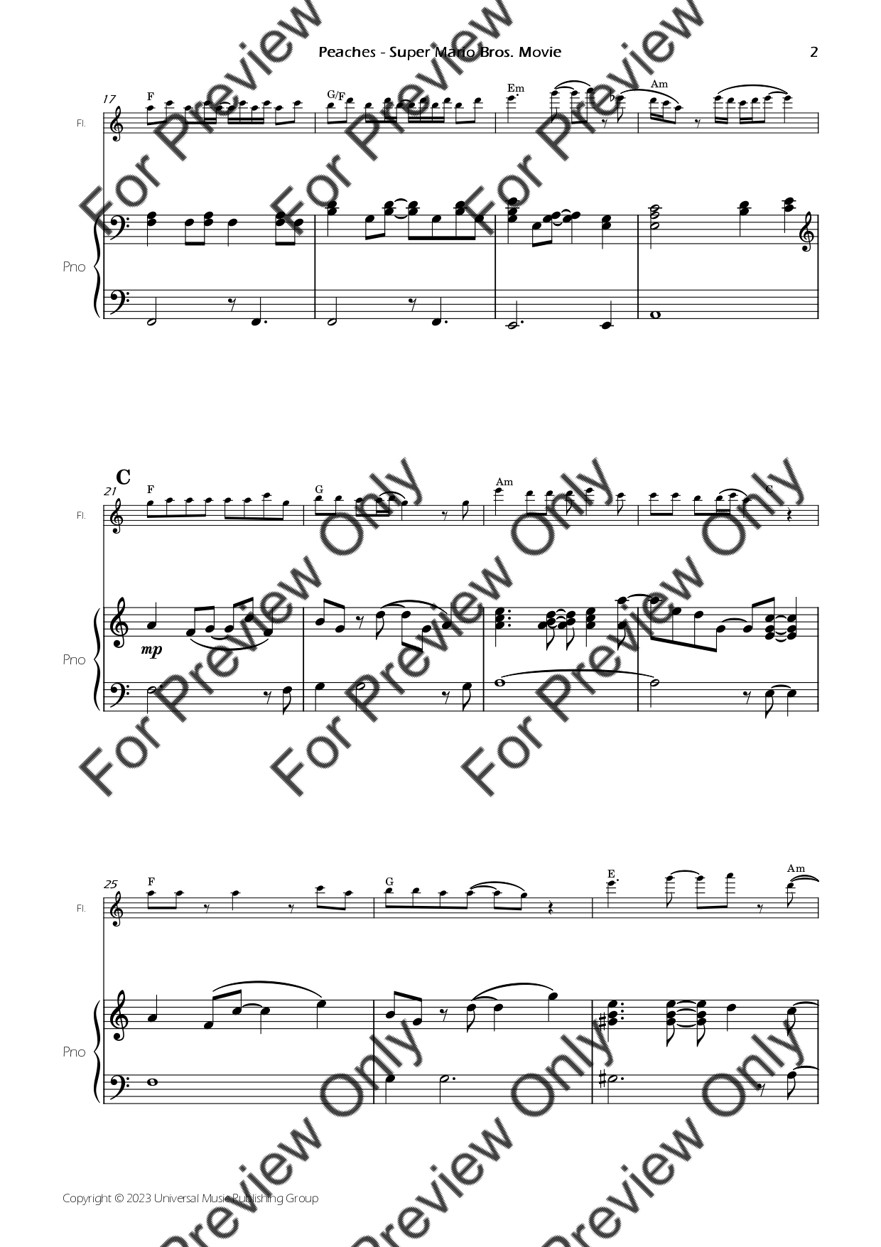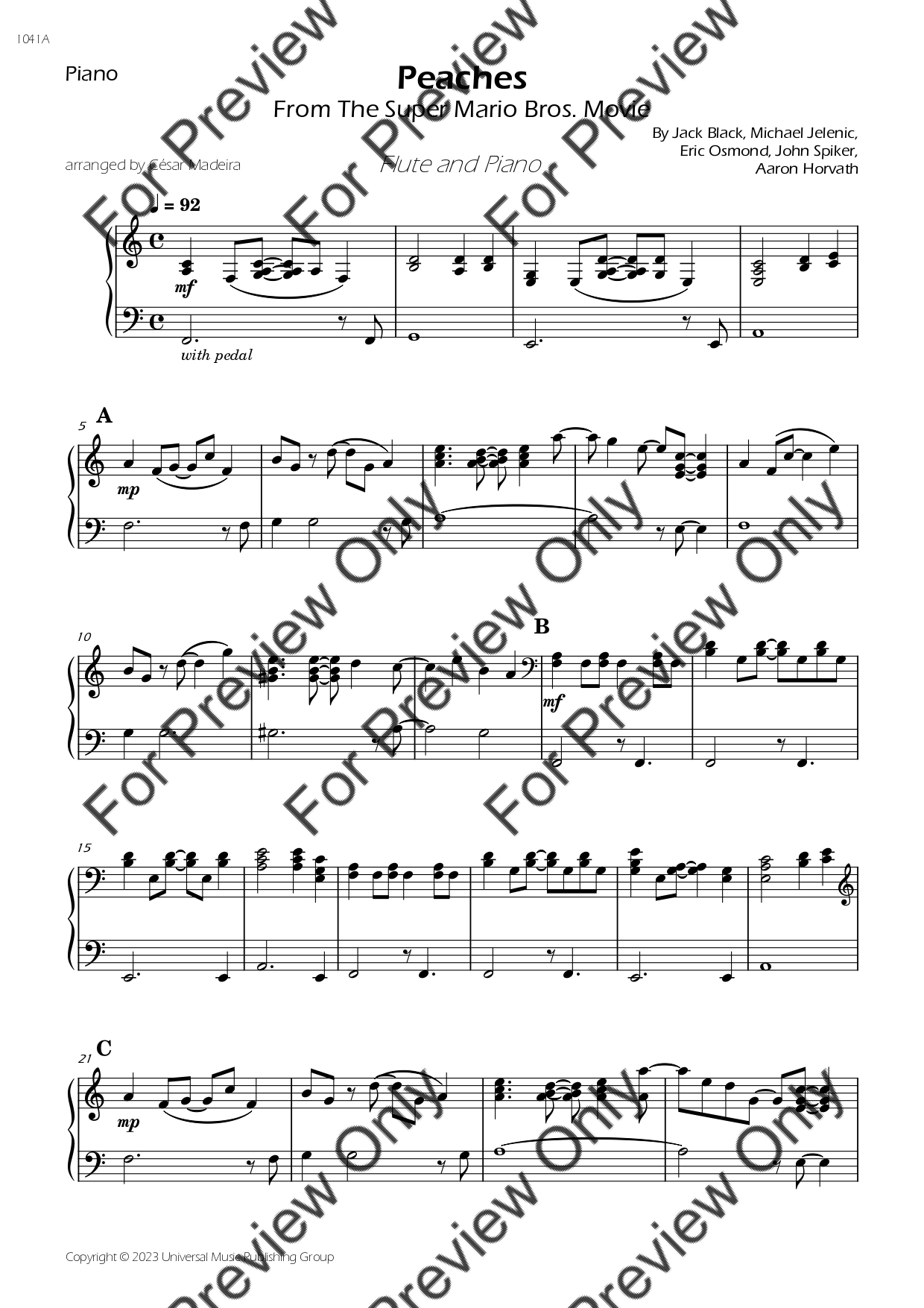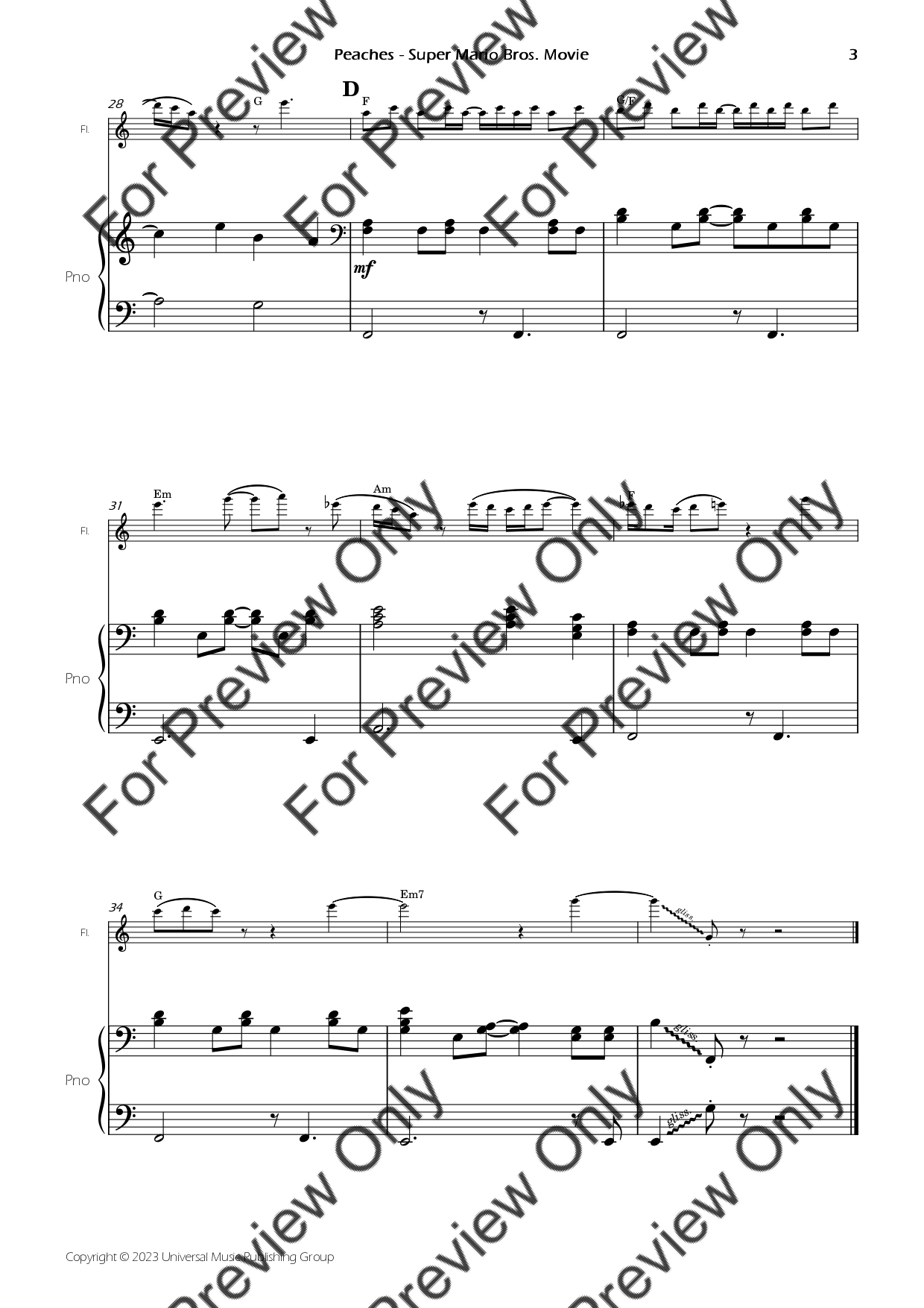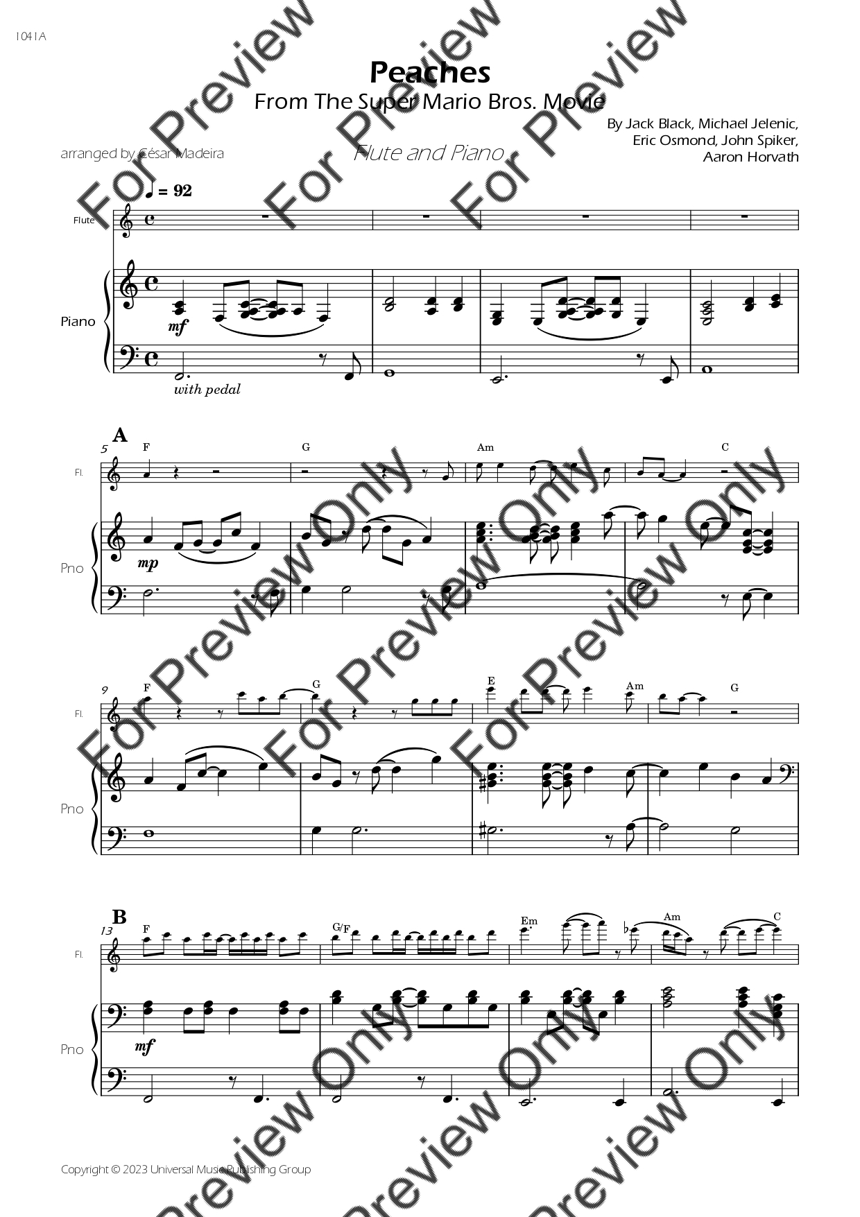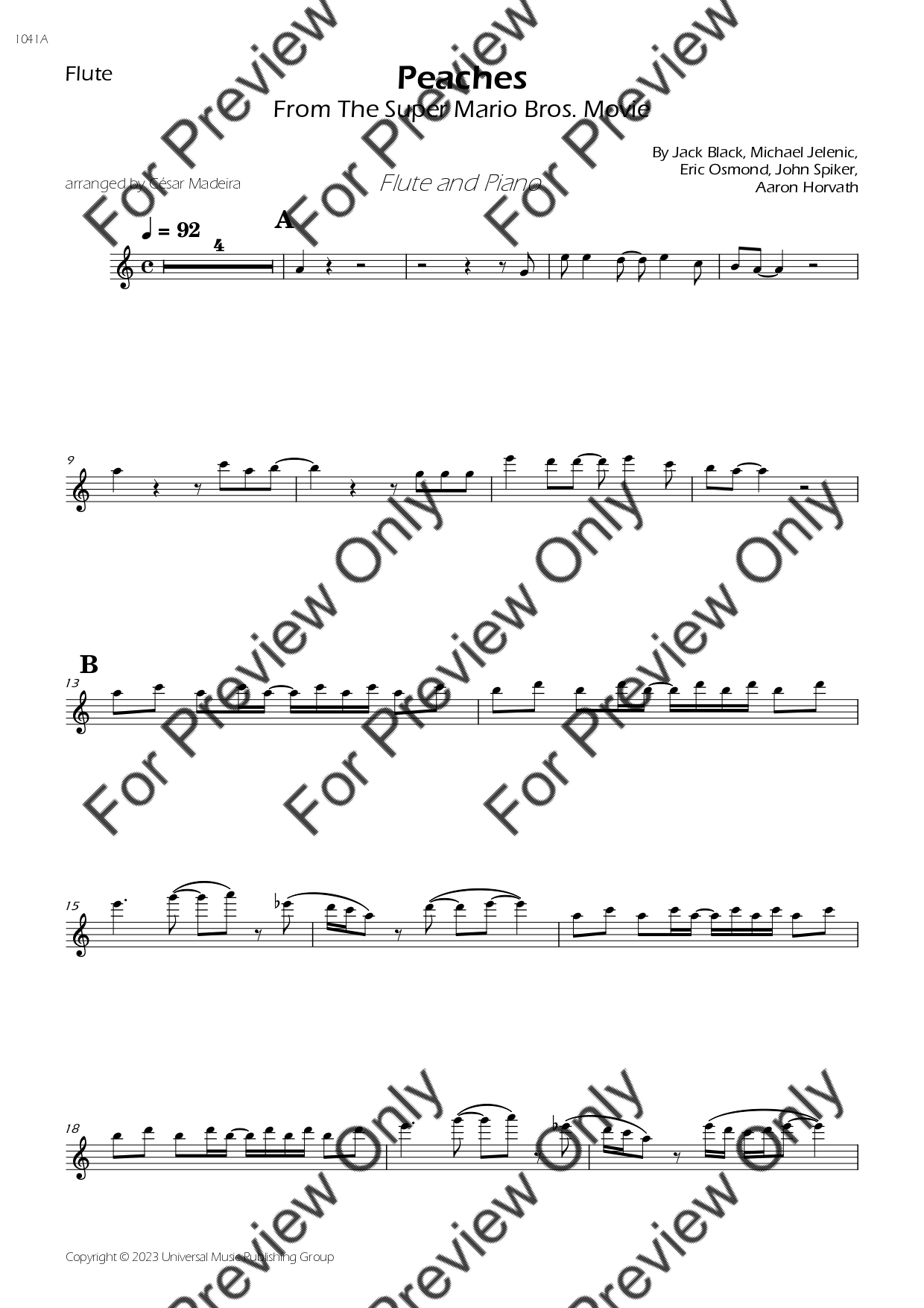 Peaches by Jack Black from The Super Mario Bros. Movie. Arrangement for Flute and Piano. With Full Score and Individual Parts. Have fun!