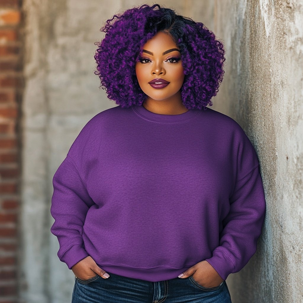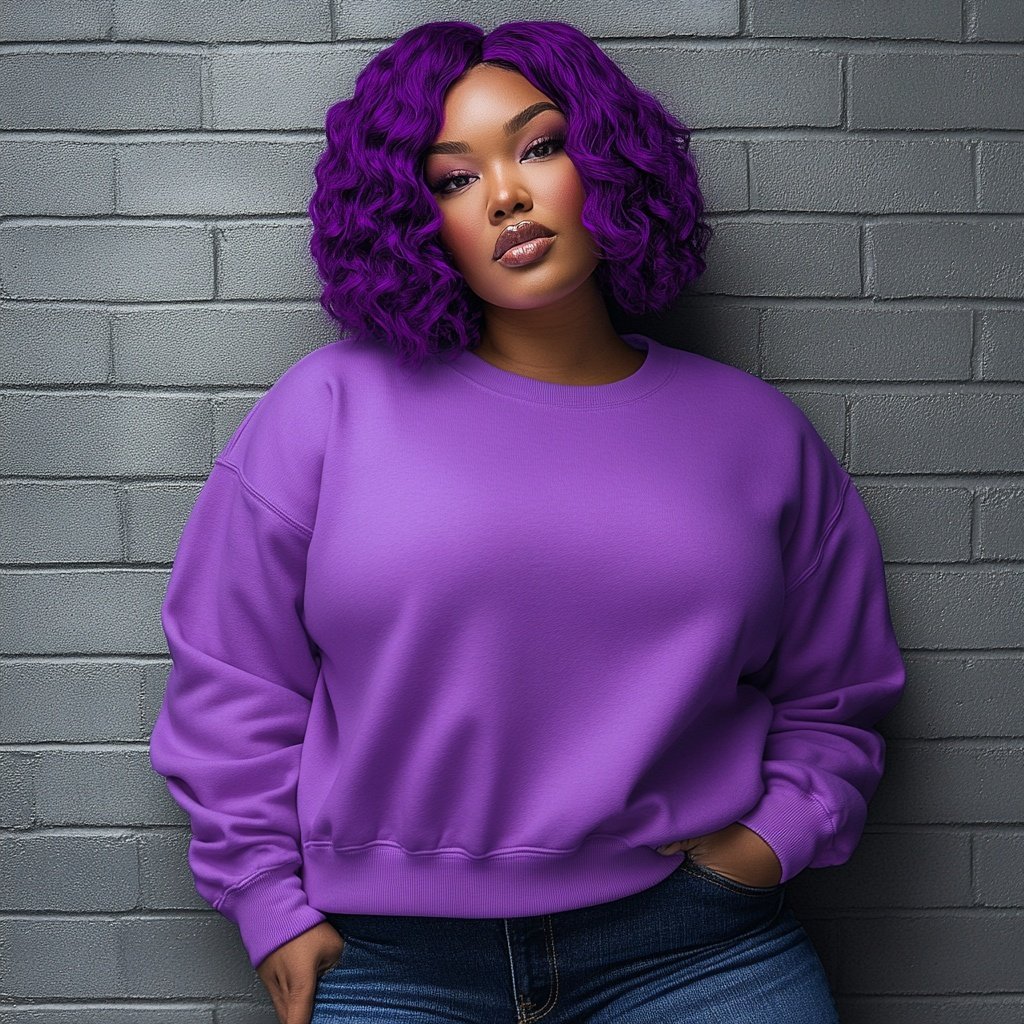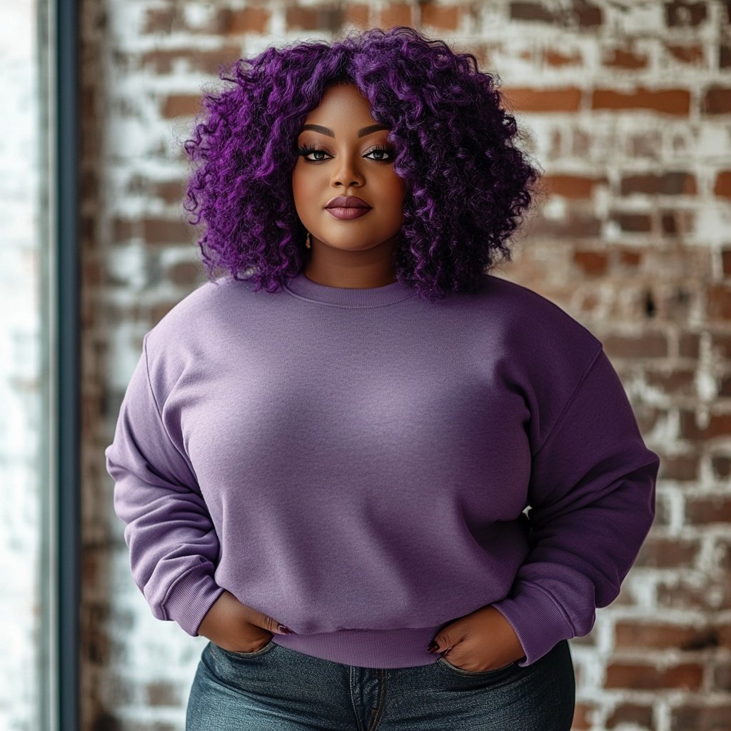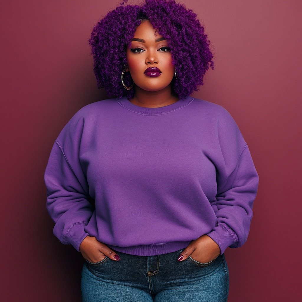 Show off your designs in style with this vibrant purple mockup set! Featuring confident plus-size models in bold purple sweatshirts, these mockups radiate strength, beauty, and confidence — perfect for showcasing your apparel designs with attitude and class.