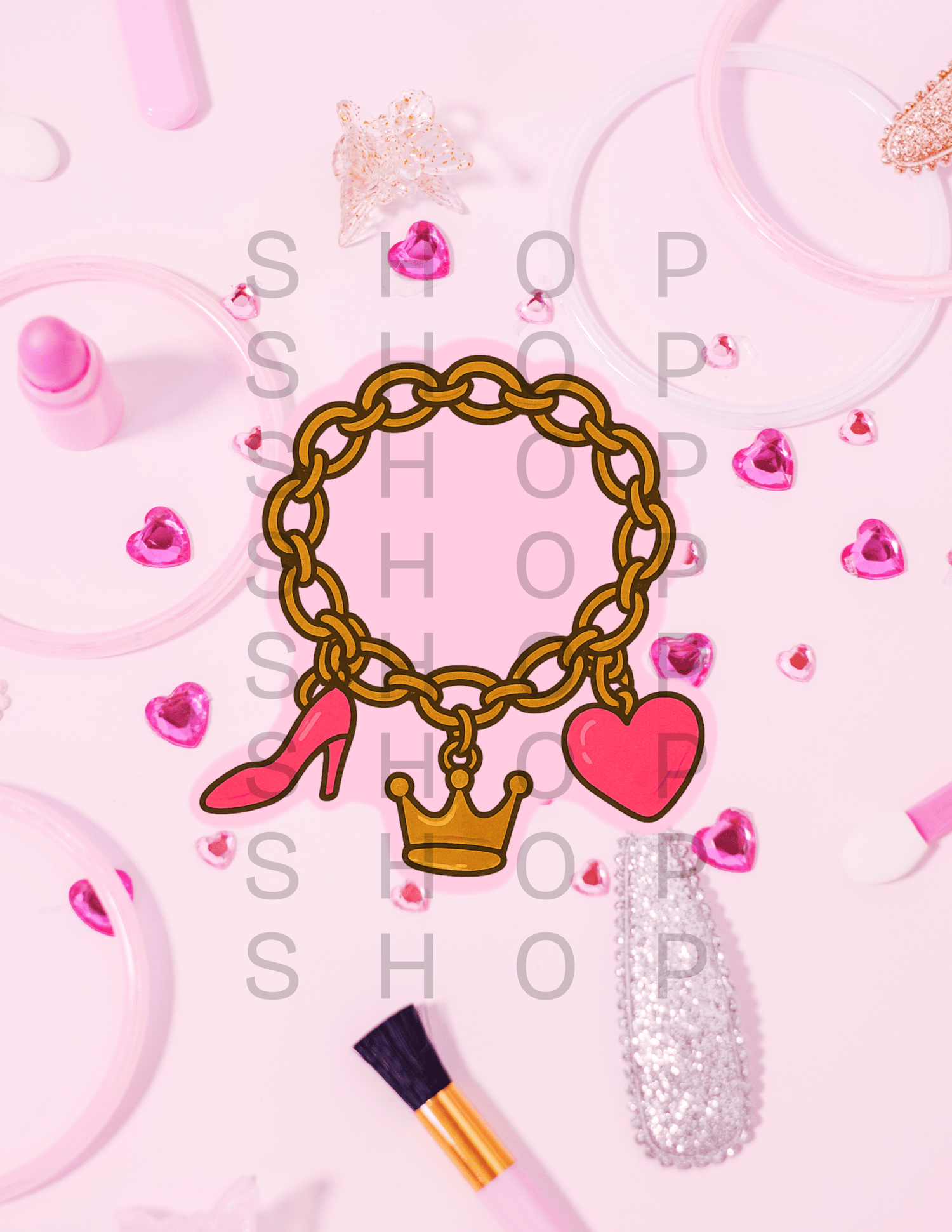 **Y2K PINK/GOLD CHARM BRACELET PNG | Digital Download**