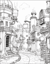 Intricate Details: Revel in the intricate details of each location, from the fine etchings on buildings to the ornate decorations and clockwork elements. The careful design of the illustrations ensures a satisfying and immersive coloring experience.