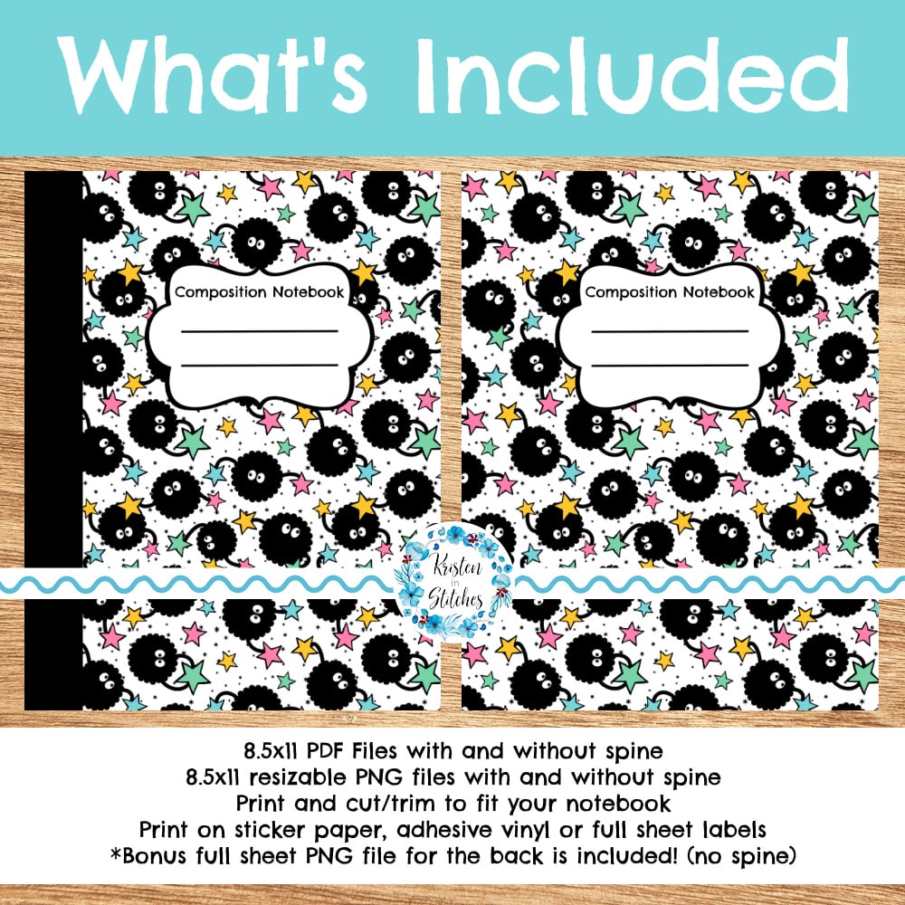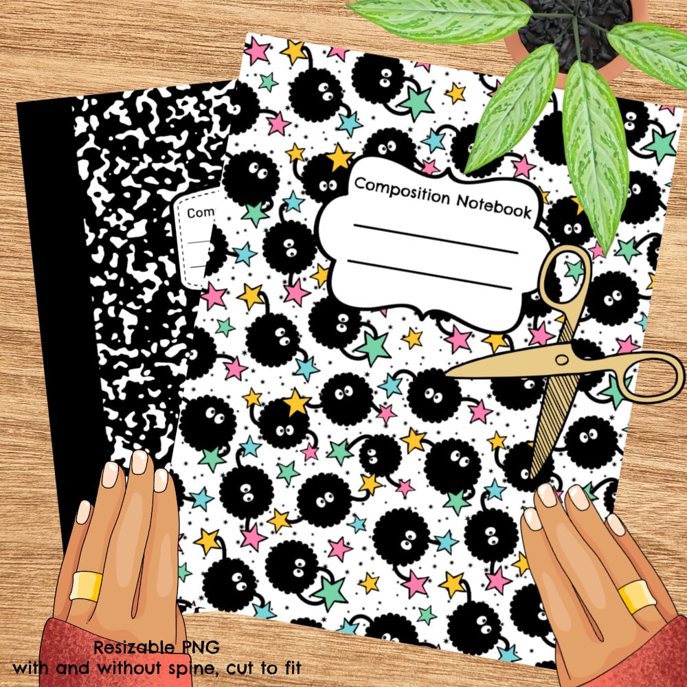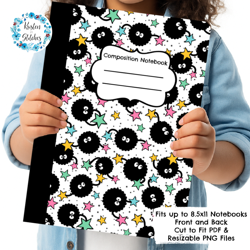 Composition Notebook Cover, Printable Resizable PNG, PDF, Soot Sprites and Stars