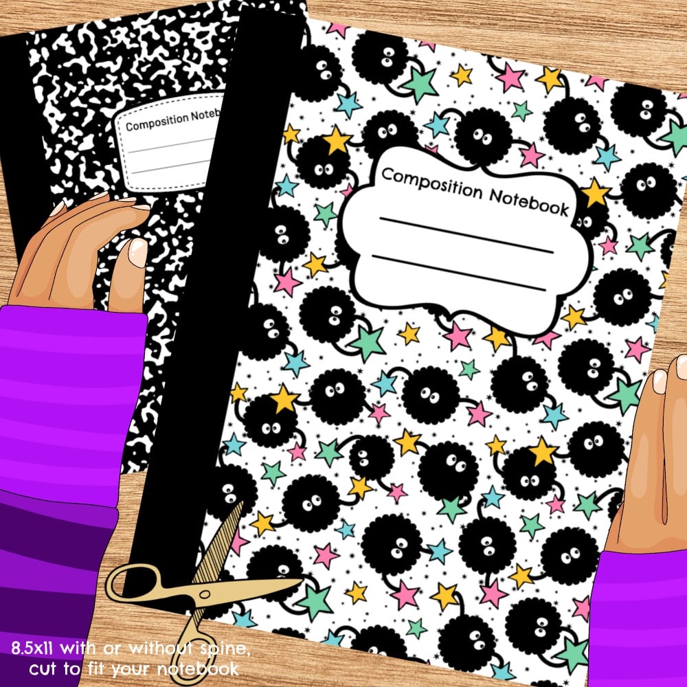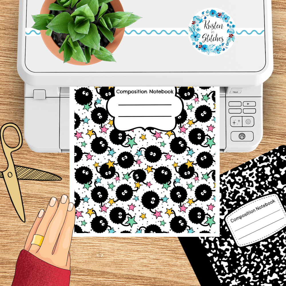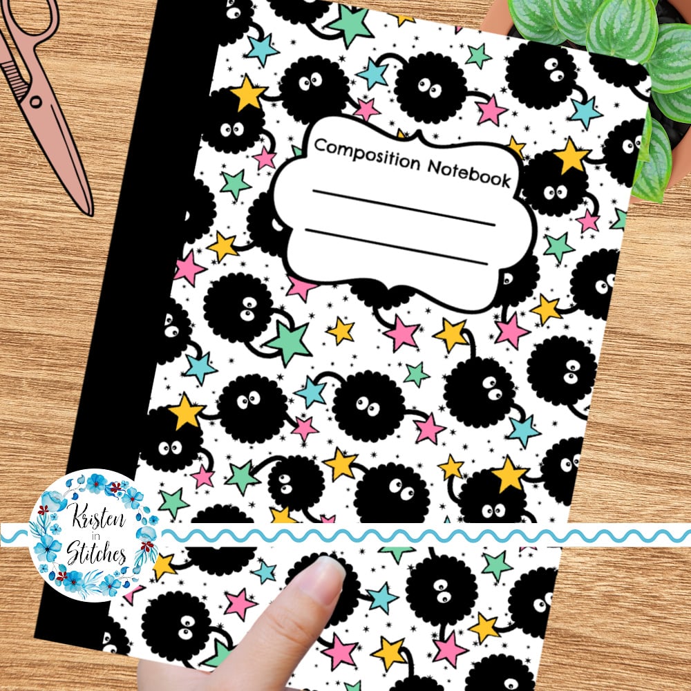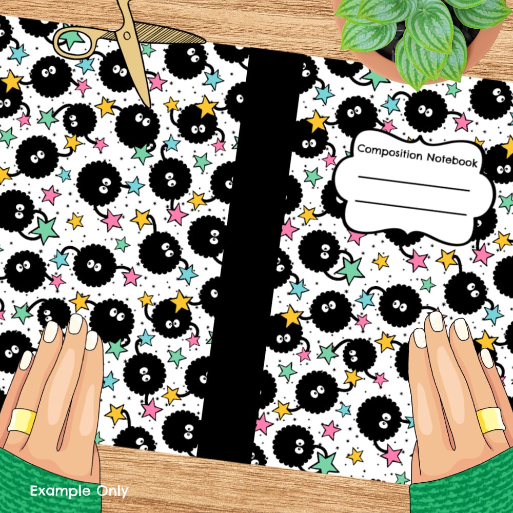 Composition Notebook Cover, Printable Resizable PNG, PDF, Soot Sprites and Stars