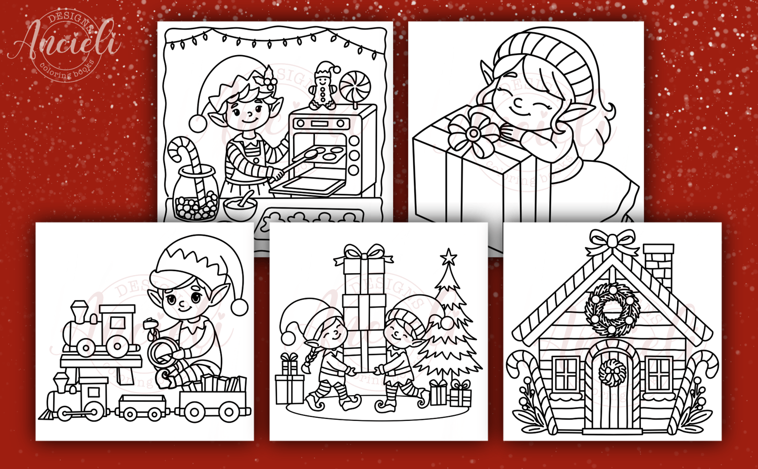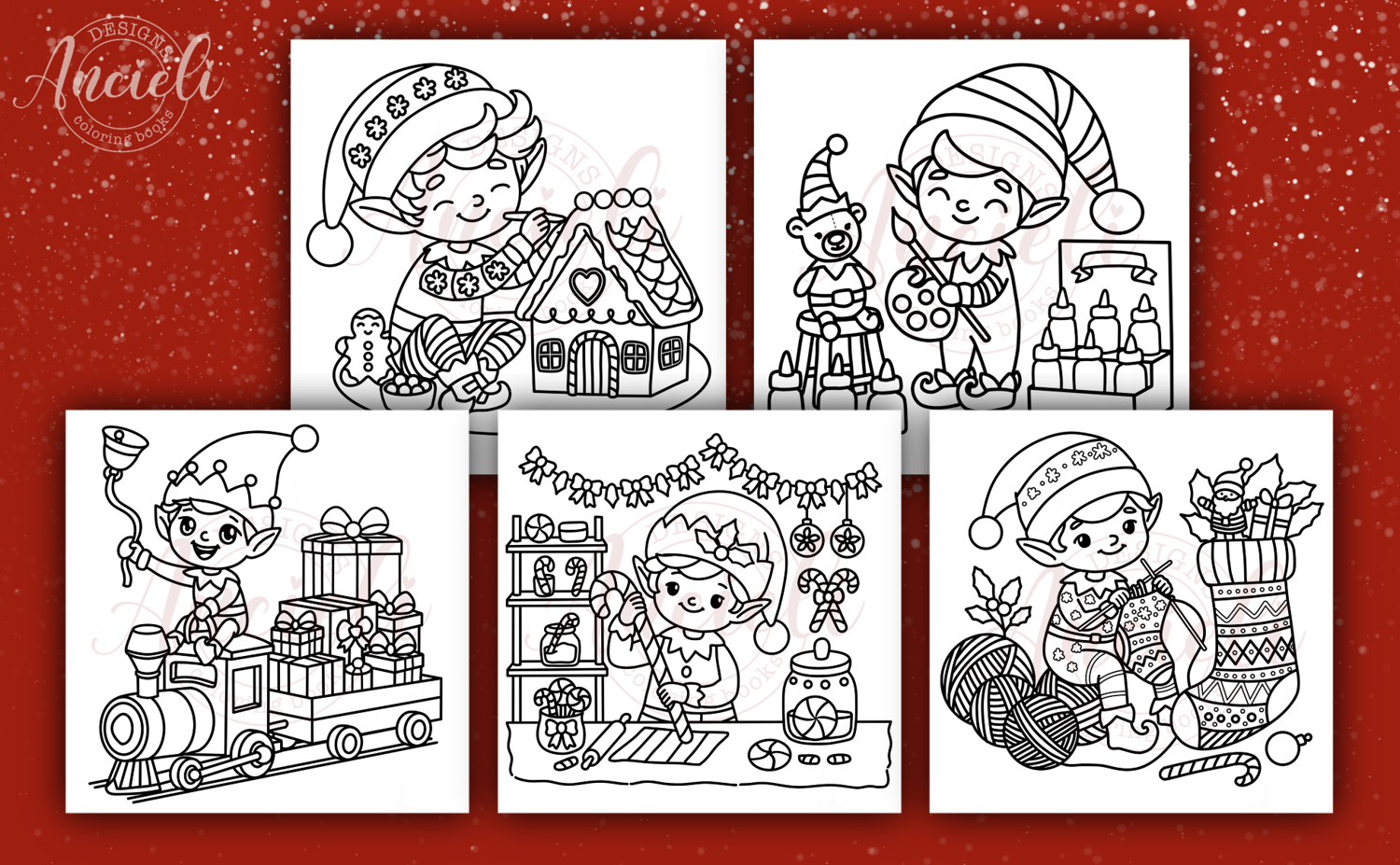 Elves Workshop - 10 coloring pages digital download