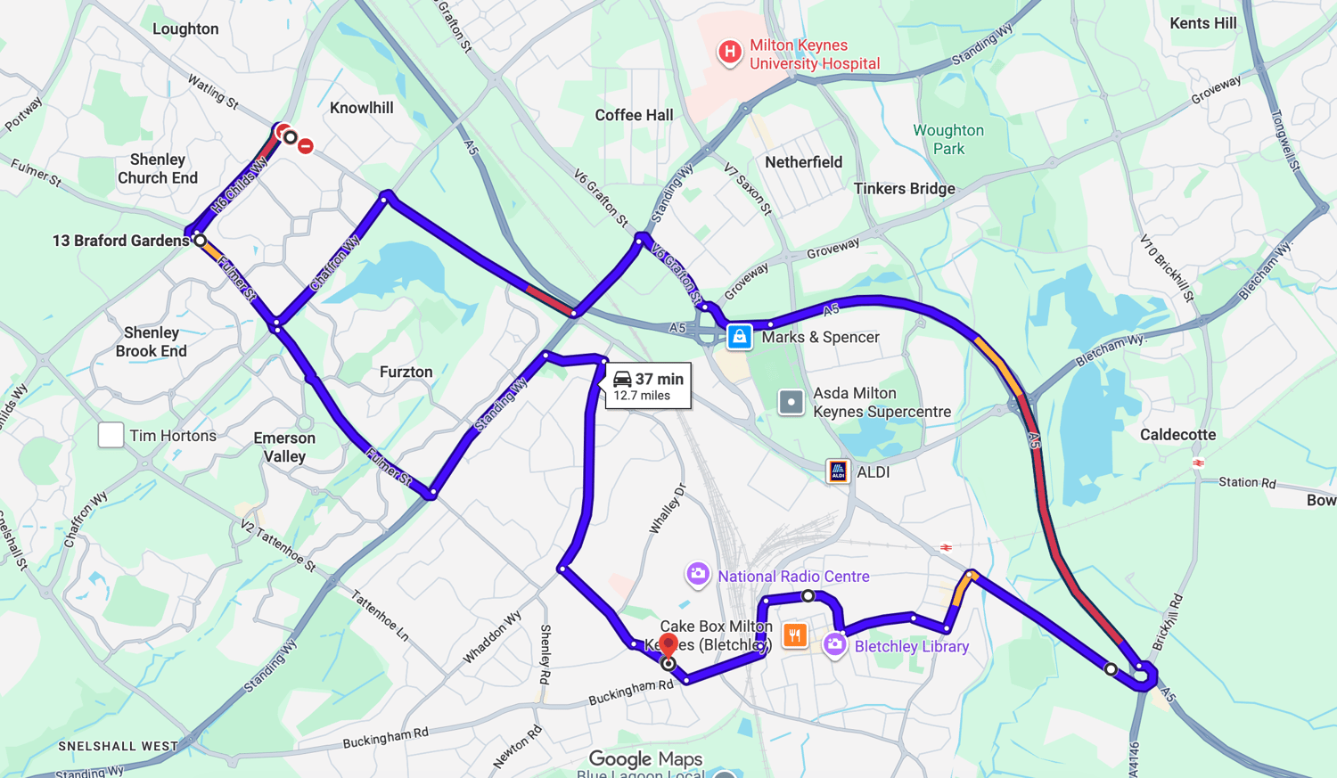 Practise real driving test routes in Bletchley before your exam – open directly in Google Maps