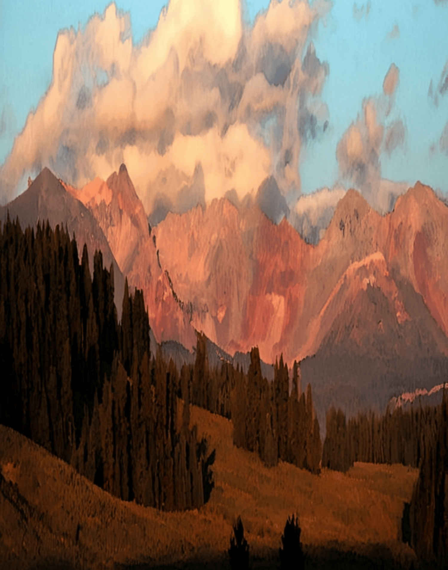 Mountainous Landscape, Vintage Landscape, Nostalgic Nature, Cool Nature, Rustic natural Landscape, Painting.