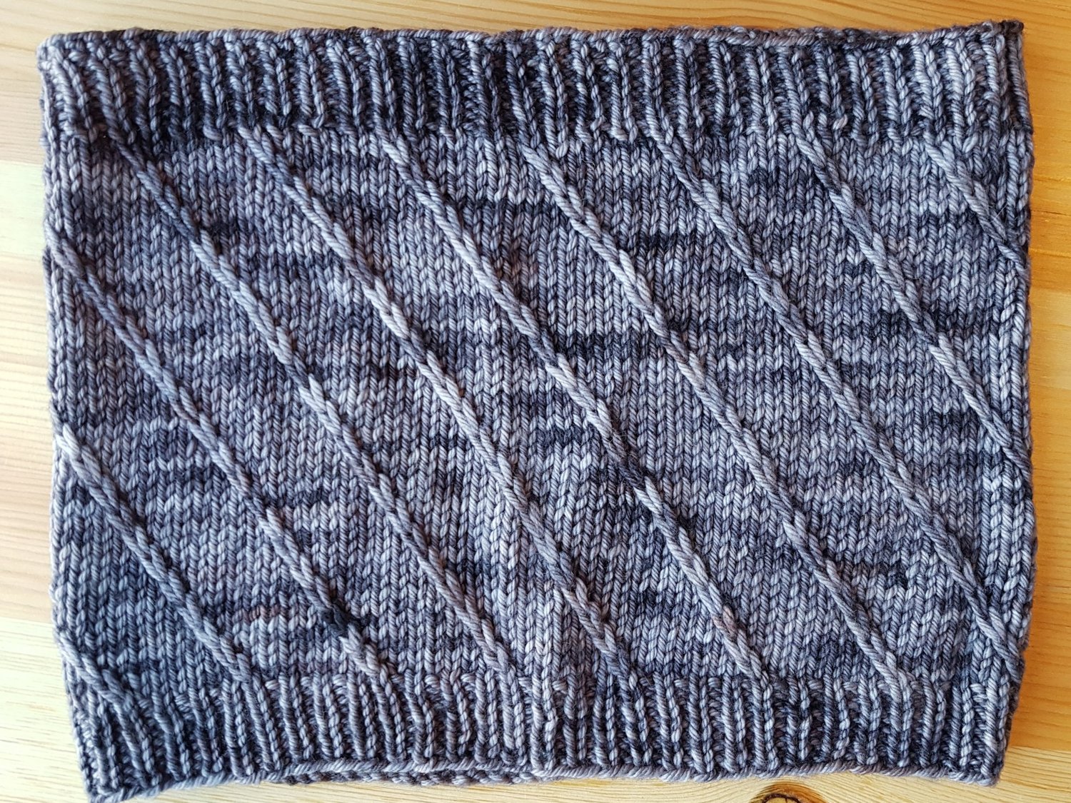 A simple two stitch slipped cable travels around the body of this cowl, creating an elegant spiral to keep you toasty warm. With three different colourwork options, and a choice between single and double wrap, you’ll find yourself knitting this cowl again and again. Instructions and photo tutorial for cabling without a cable needle are included.