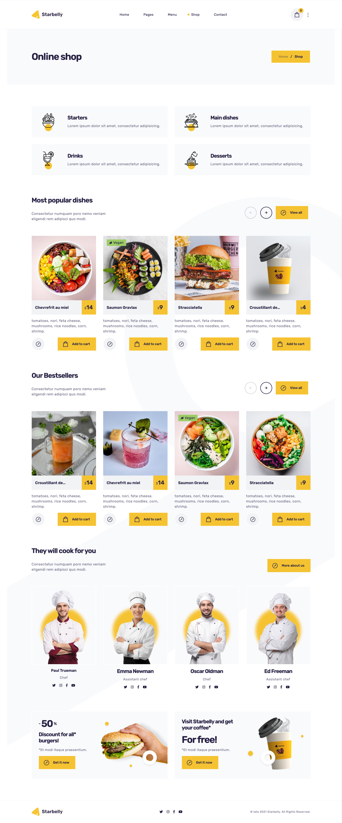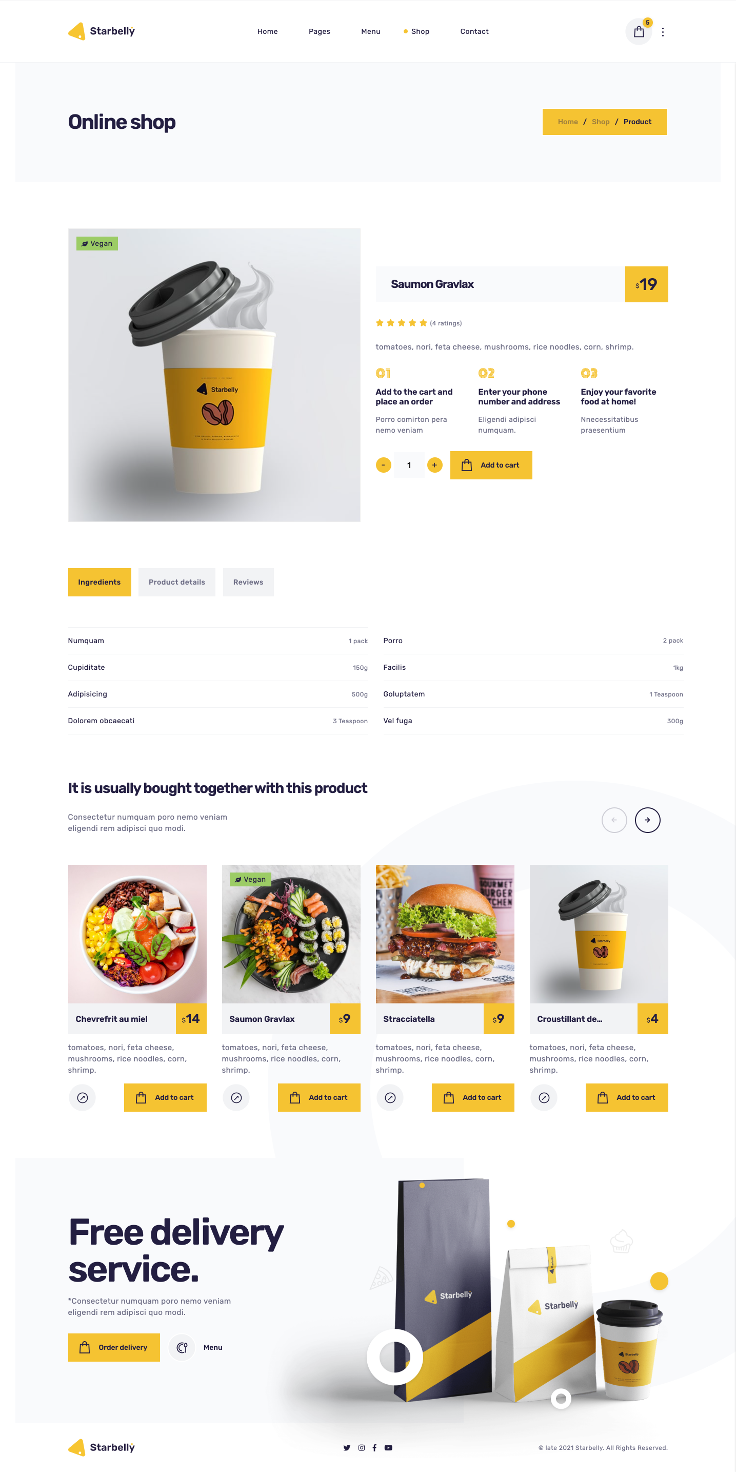 Our HTML template for cafes, restaurants, fast food joints, and online food delivery services offers a modern, unique design with beautiful animations that attract visitors. It includes dedicated menu pages designed for easy viewing of dishes and integrates online sales features such as order forms and a shopping cart. The template is responsive and easily customizable, making it perfect for any food establishment looking to enhance its online presence. Choose our template and turn your website into a true customer magnet!