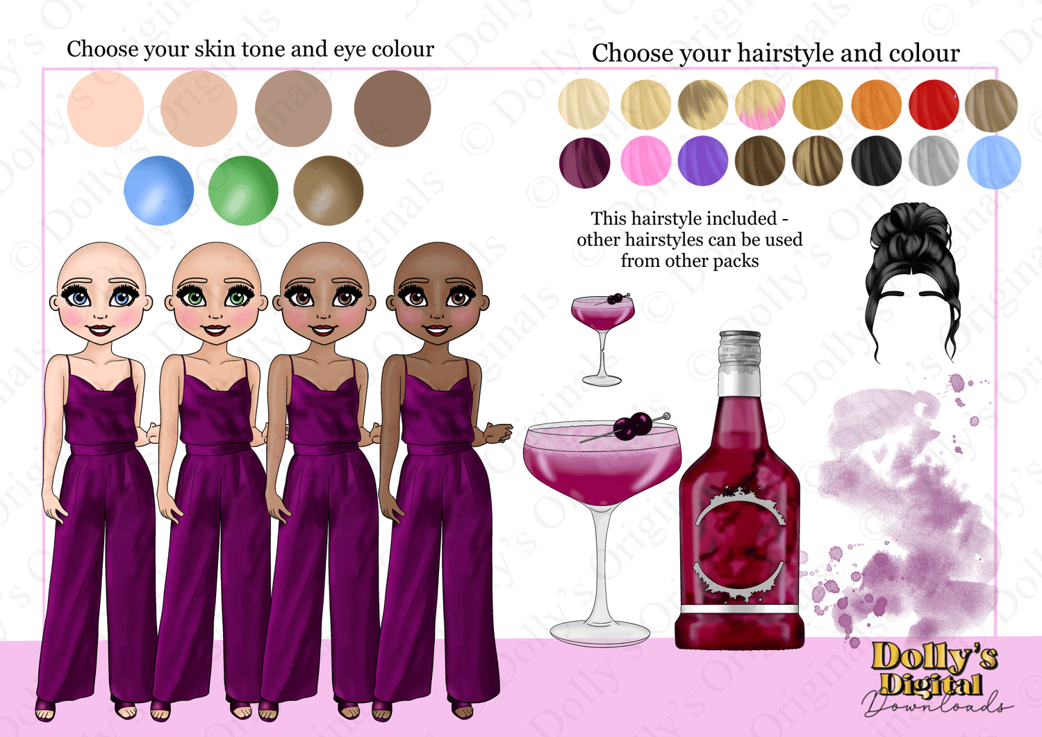 Instant digital download of our Blackcurrant Sours Cocktail Dolly Character Bundle PNG (35 PNG’s)