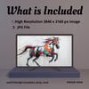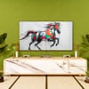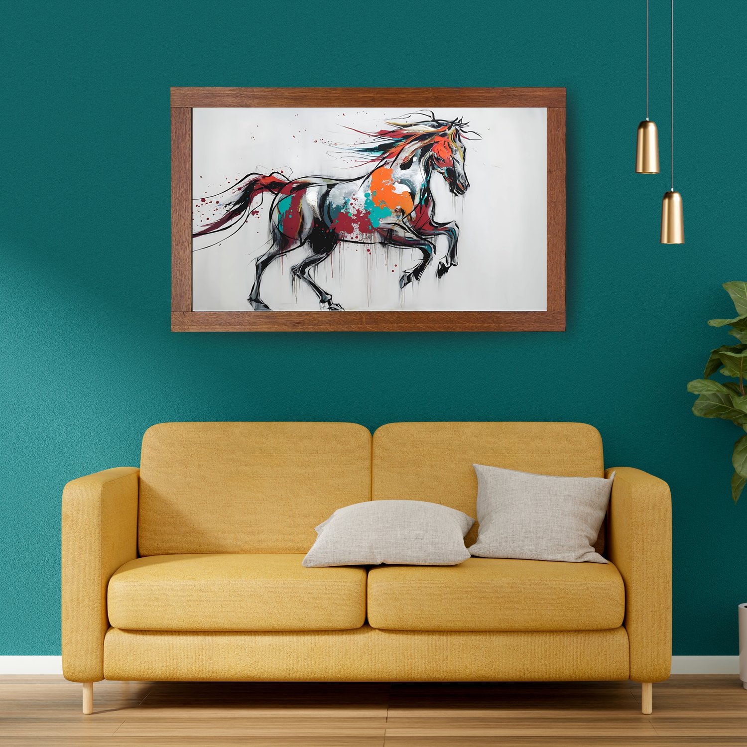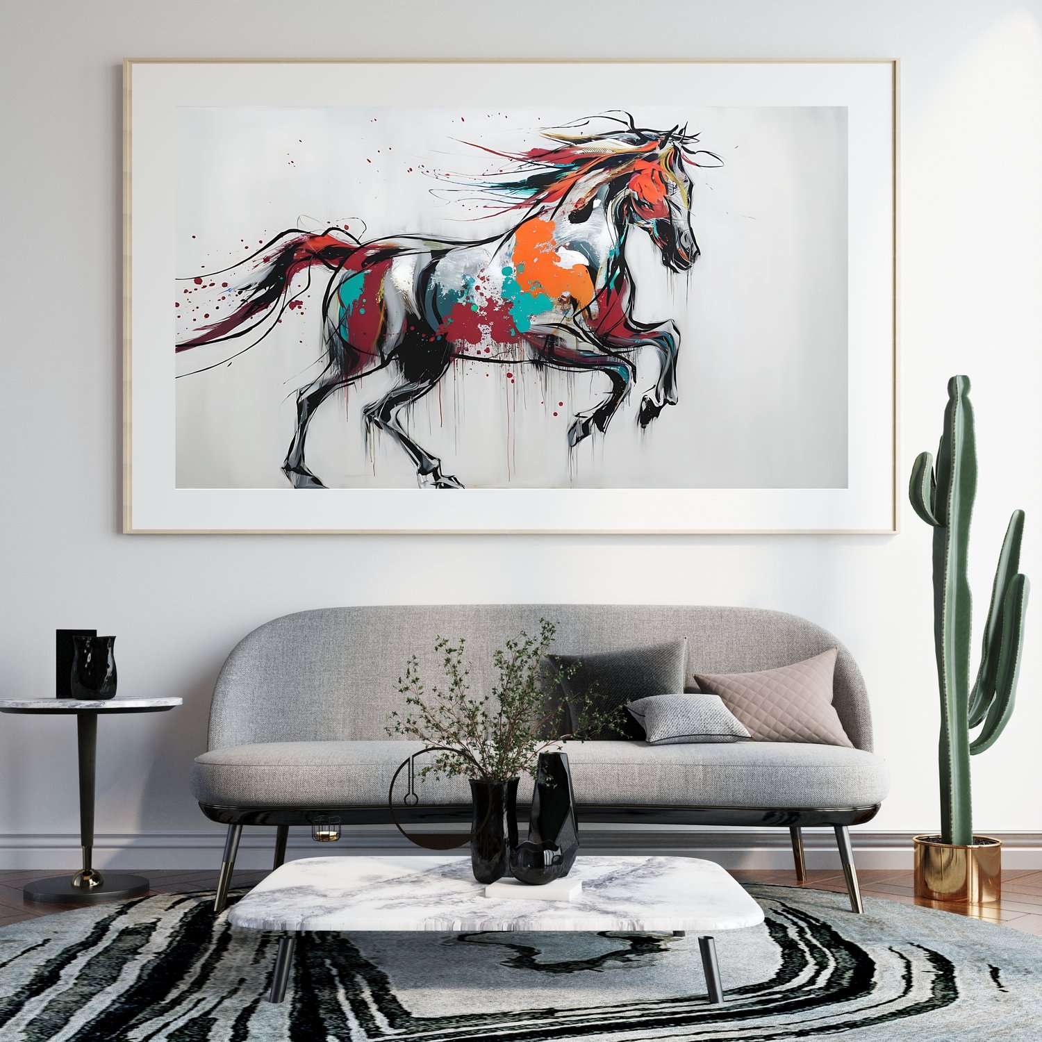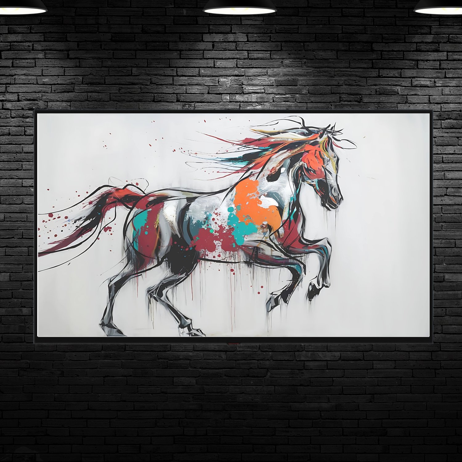 Emotion in Motion: The horse’s kinetic energy and dazzling colors evoke passion, freedom, and creativity.