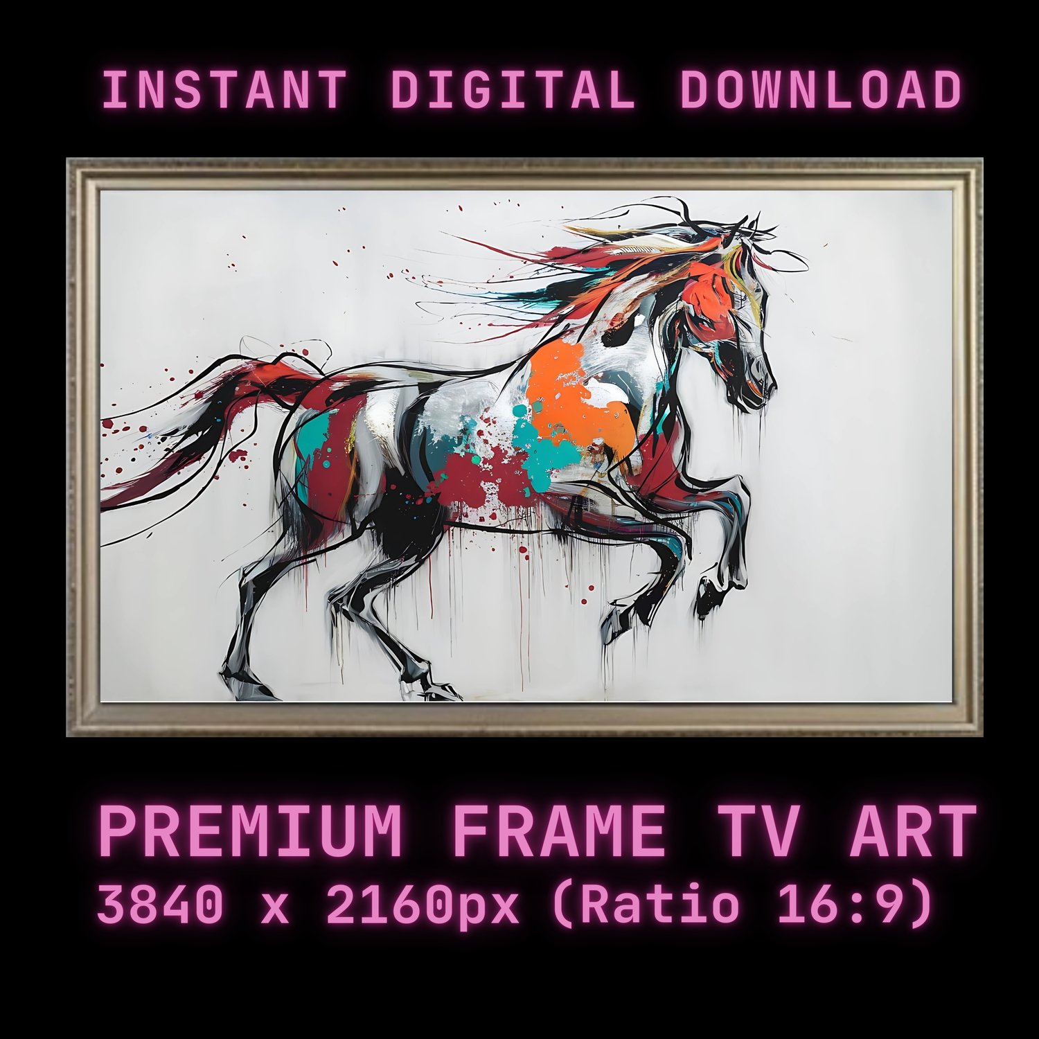 Abstract Horse Silhouette Art - Vibrant AI-Generated Frame TV Art | Dynamic Brushstroke Digital Download | 4K Modern Expressionist Artwork