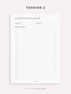 Movie Challenge Planner for Remarkable, Supernote, Kindle Scribe, Boox, Kobo