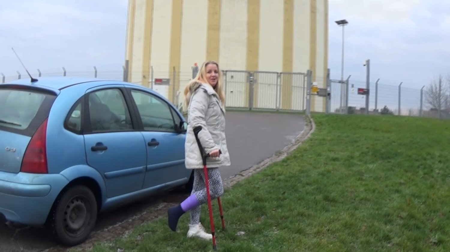 This is a good crutching video of Alva. She is crutching from her car into a big park. She follows the long paths and by now you should know that she is a crutching pro. She never stops for a rest until the end when she finds a bench to sit down on and props up her leg on the crutch.