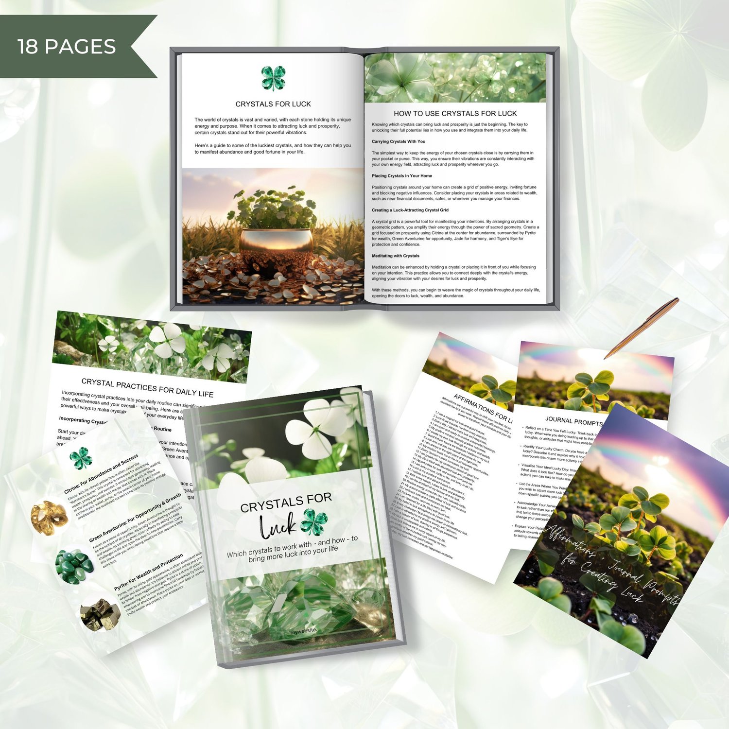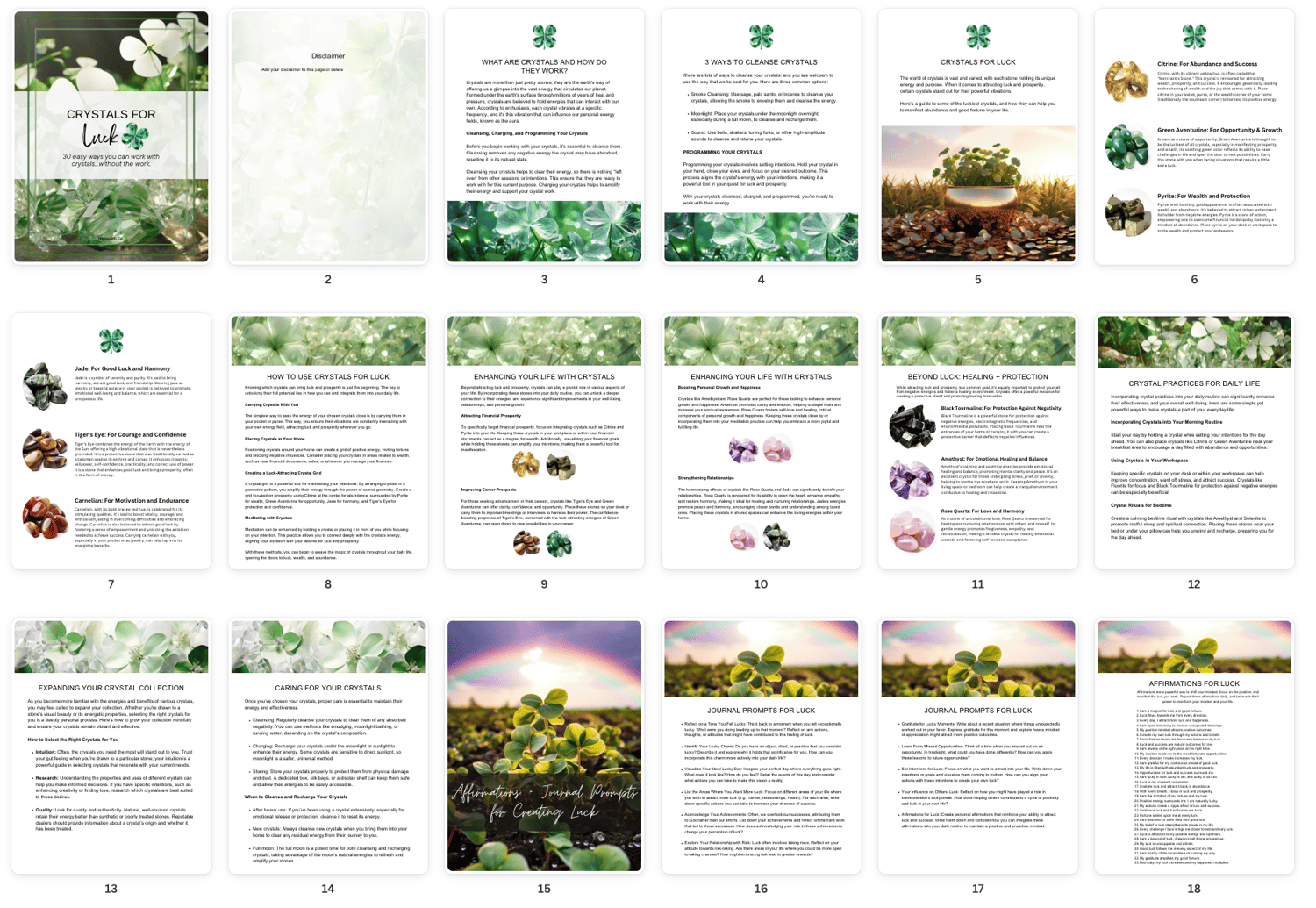 Done for You: Crystals for Luck 18-Page Ebook/Workbook CANVA TEMPLATE