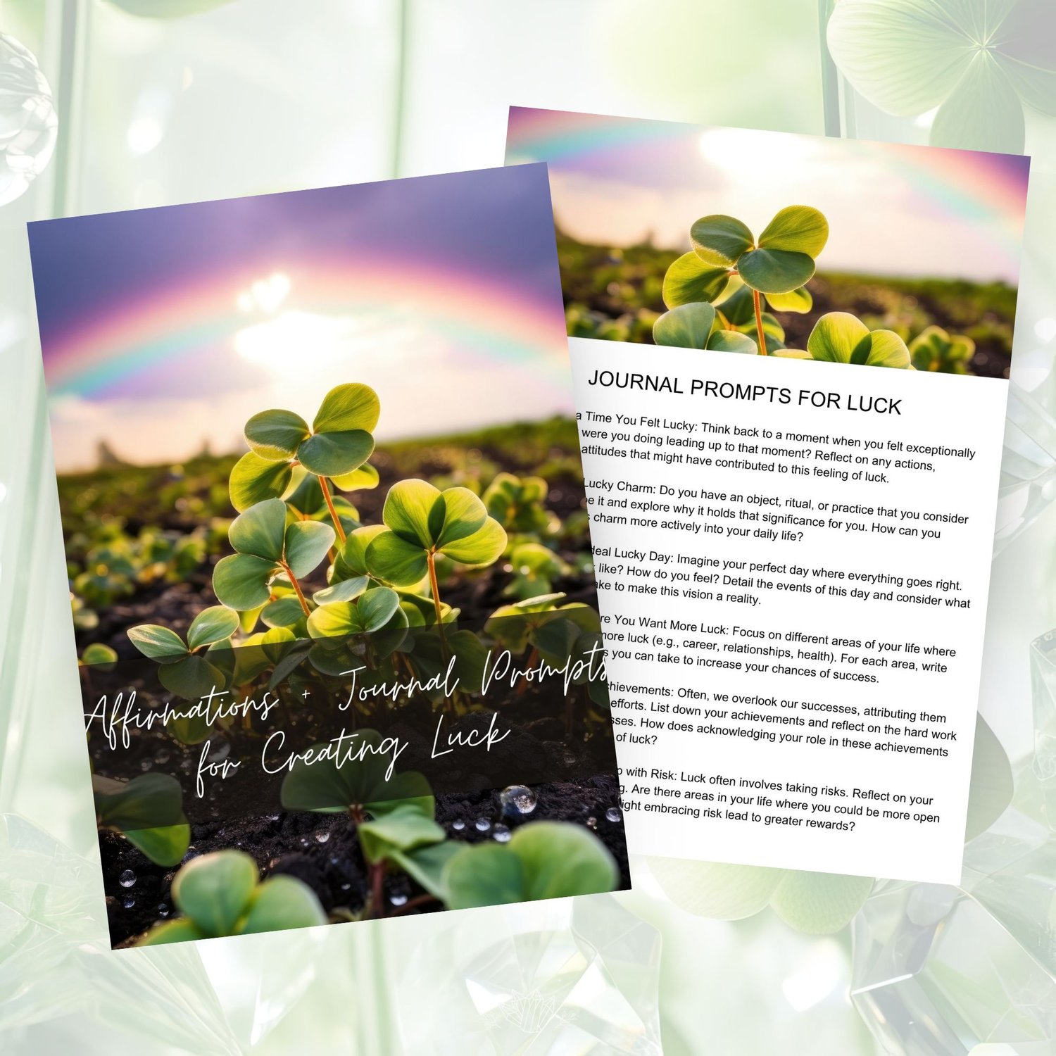 Fully editable and customizable, this Canva template allows you to seamlessly integrate your brand's style and voice. The workbook includes information about 6 crystals for luck, journal prompts, affirmations, and ways to increase feelings of luckiness in your life.