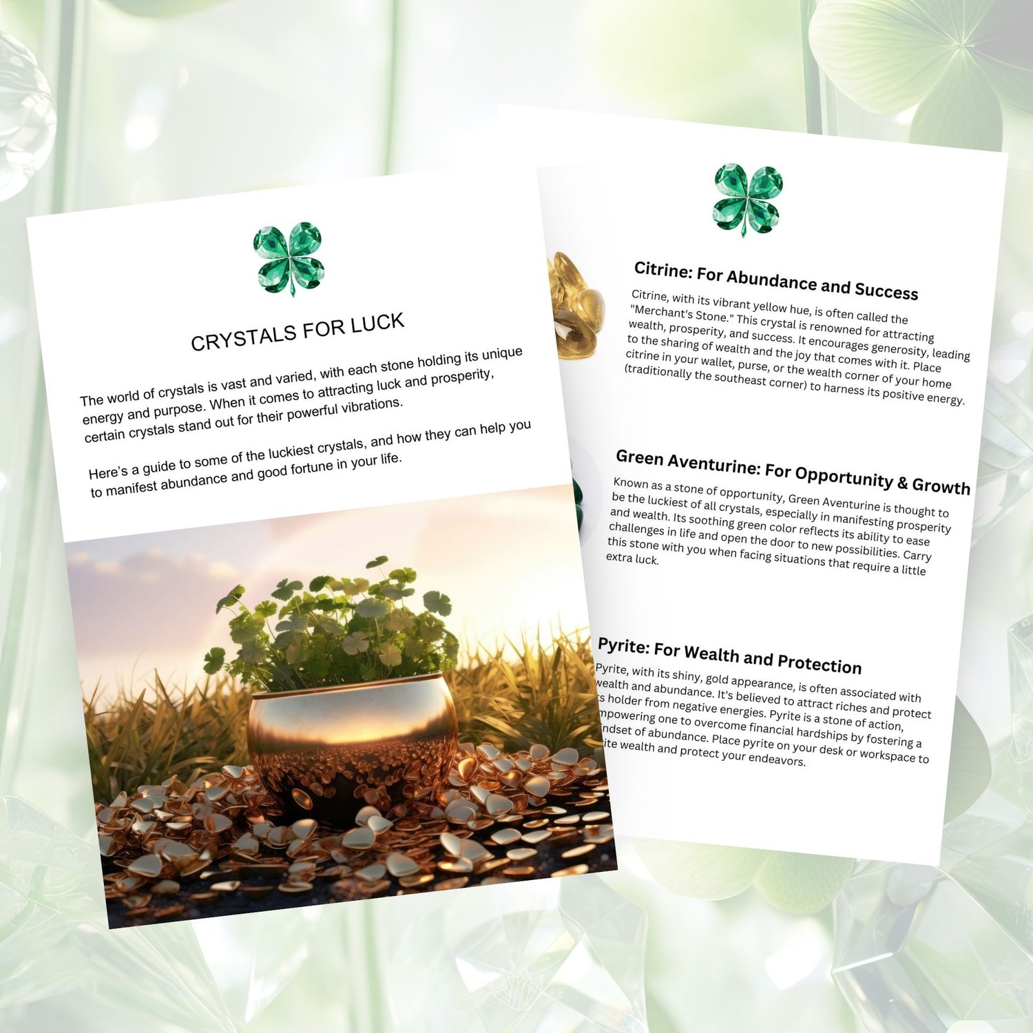 Edit it as much (or as little!) as you'd like and use it as a St. Patrick's Day (or any time) freebie, paid e-book, or to create a masterclass or workshop on crystals for luck.