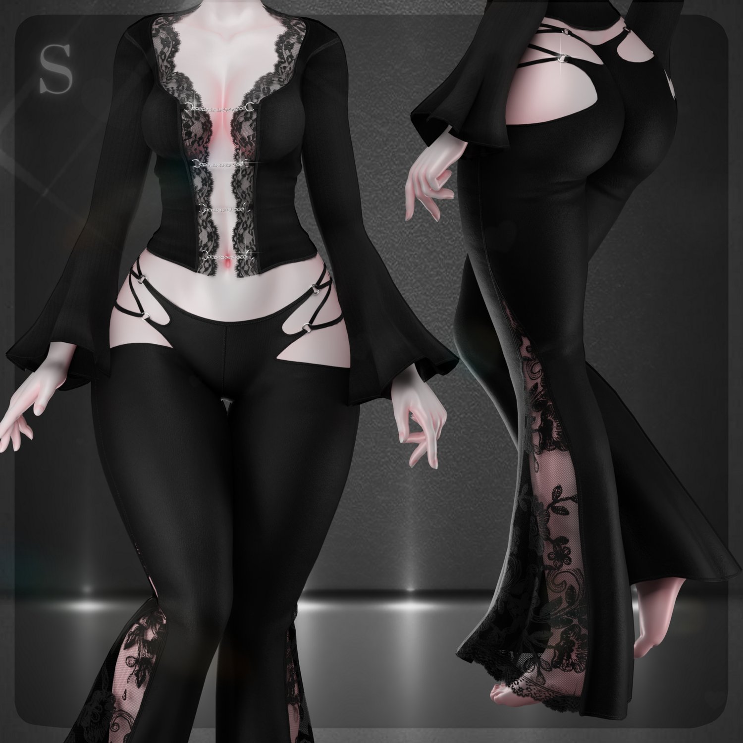 - Rigged: Ends (Flared) of sleeves on Long-sleeve, Ends (Flared) of Leggings