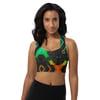 Sports Bra offers excellent support during medium to high-intensity exercise. It’s made from compression fabric, has a double-layered front, and less stretchy fabric detail in shoulder straps for extra support. The bra’s feminine, longline silhouette makes it the perfect workout bra or a chic streetwear top.