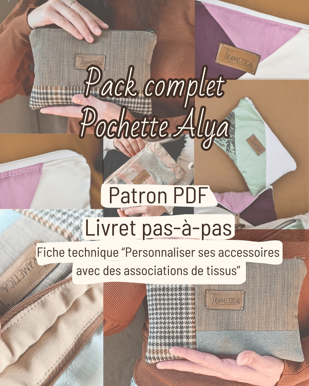 Je te propose d'apprendre à coudre ta propre pochette Alya personnalisée avec des associations de tissus.