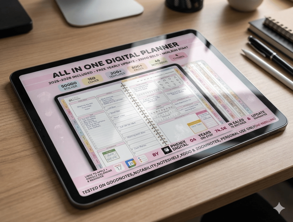Take control of your time, goals, and daily life with the Digital Planner 2026 – your complete all-in-one digital planning solution.