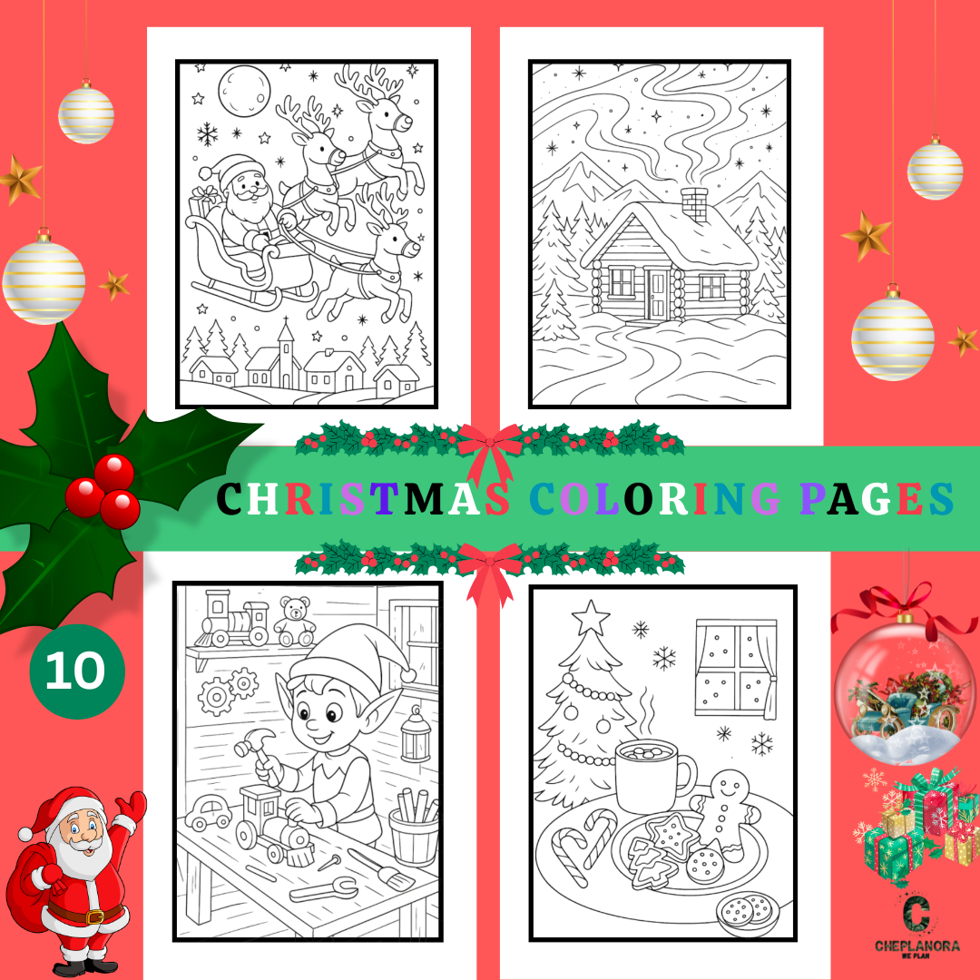 This 10-page printable Christmas activity pack (8.5 x 10 inches) is perfect for keeping kids entertained and creative during the holidays. Featuring Santa, reindeer, Christmas trees, snowmen, gifts, ornaments, and cozy winter scenes, each page brings festive joy and endless coloring fun.