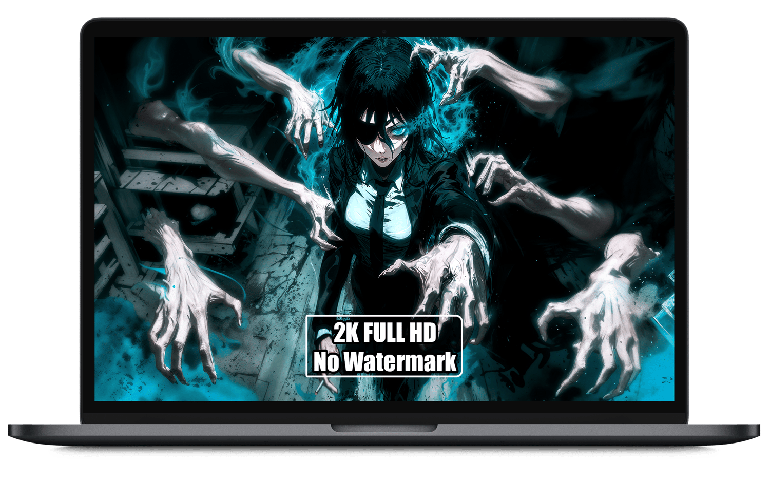 Immerse yourself in the haunting world of Chainsaw Man’s Reze Arc with this striking Himeno wallpaper. She stands with ghostly arms swirling around her, set against a dark industrial backdrop. The teal glow of her spectral hands and the gritty textures evoke the arc’s supernatural power and gritty realism.