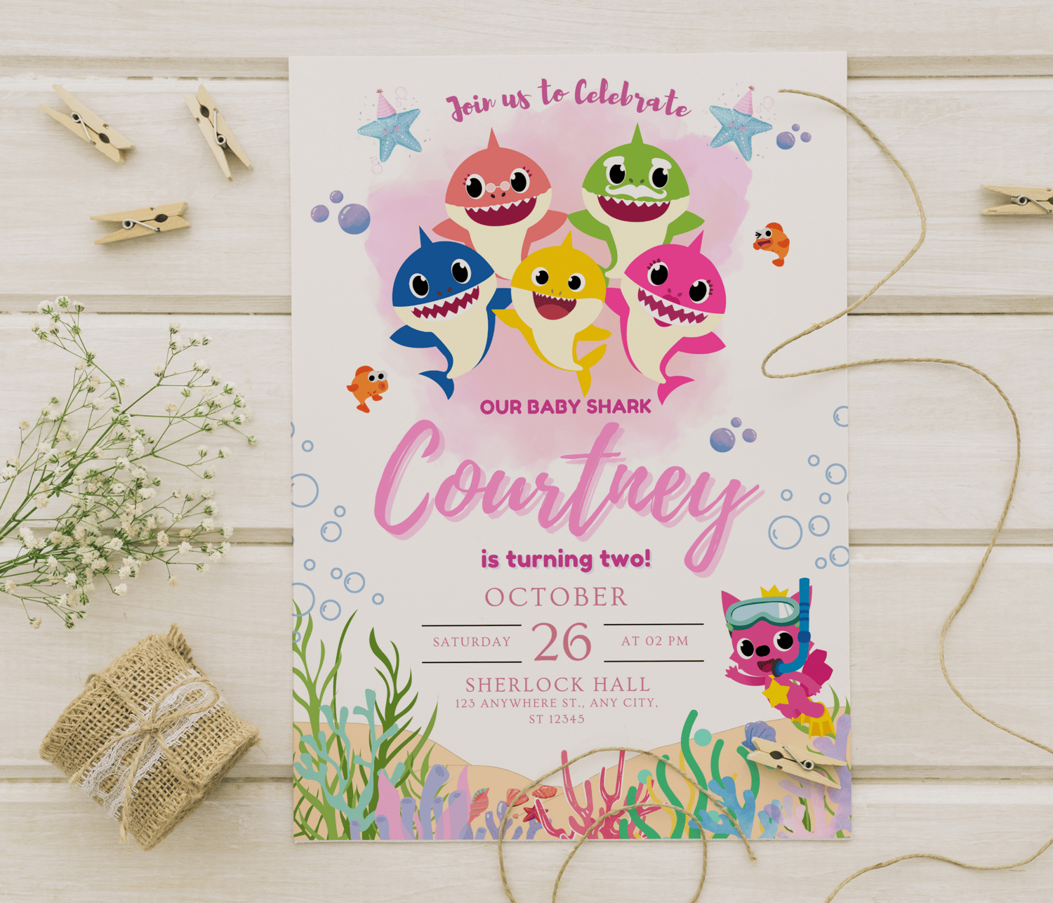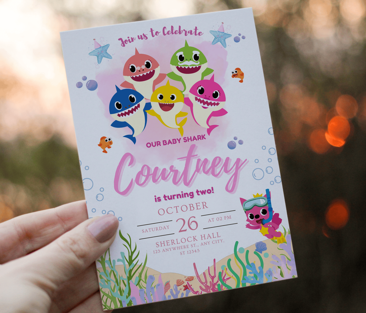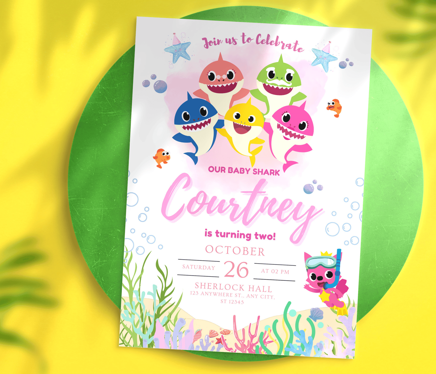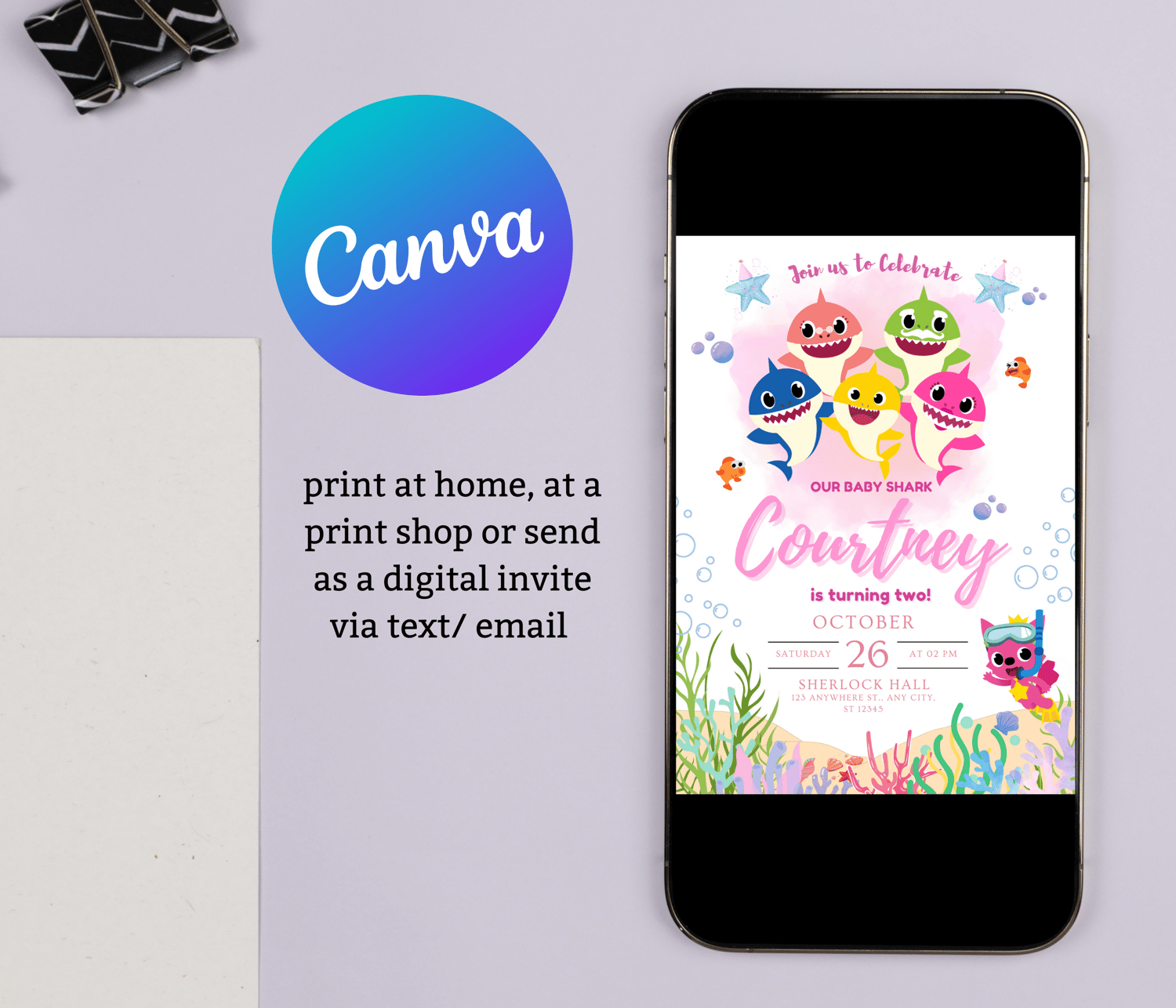 Editable Baby Shark Birthday Invitation Template, Birthday Phone Invitations, Kids Party Digital Invite Template, Kids Birthday Invitation
