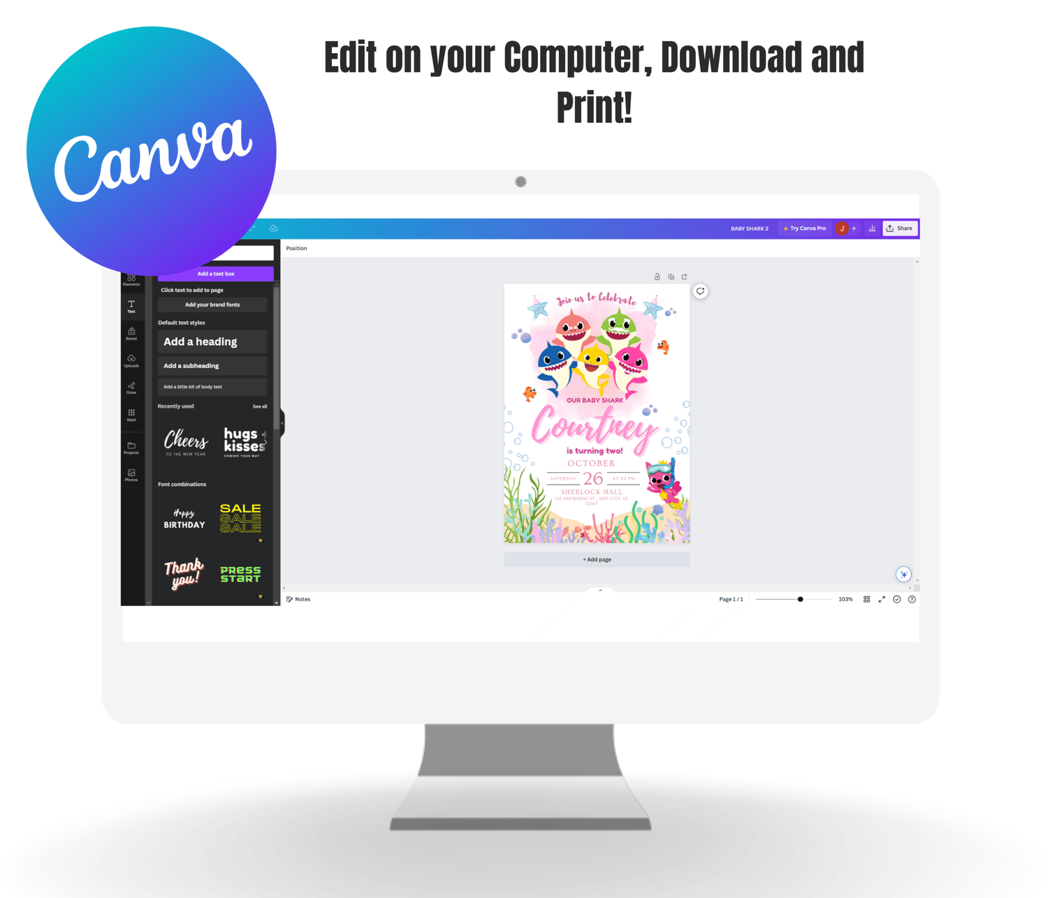 This DIY Canva template is fully editable and very simple to use. Simply edit it in Canva using your PC, tablet, or mobile device. When you are happy, download and print immediately at home, or through any local or online printing company.