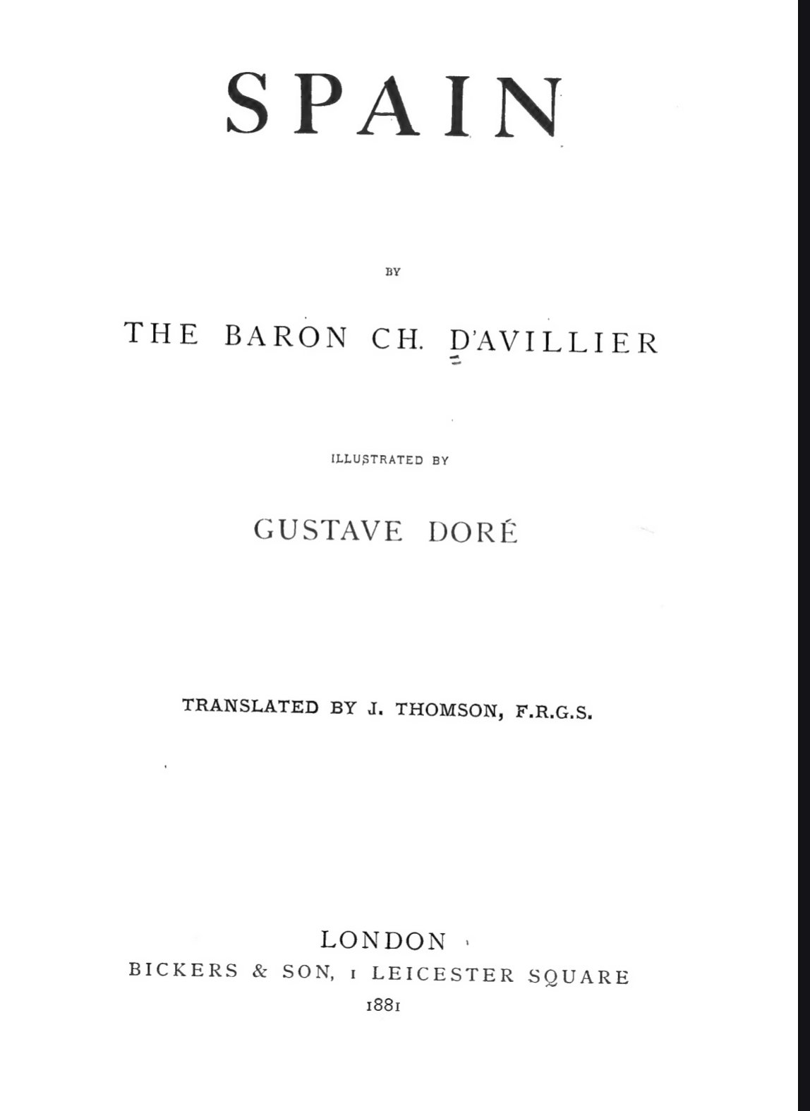 Spain -Author: Baron Charles Davillier Illustrator: Gustave Doré Publication Year: 1876