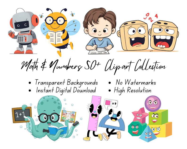 Math & Numbers 50+ Clipart Collection | High-Resolution Digital Printables | Instant Download | No Watermark