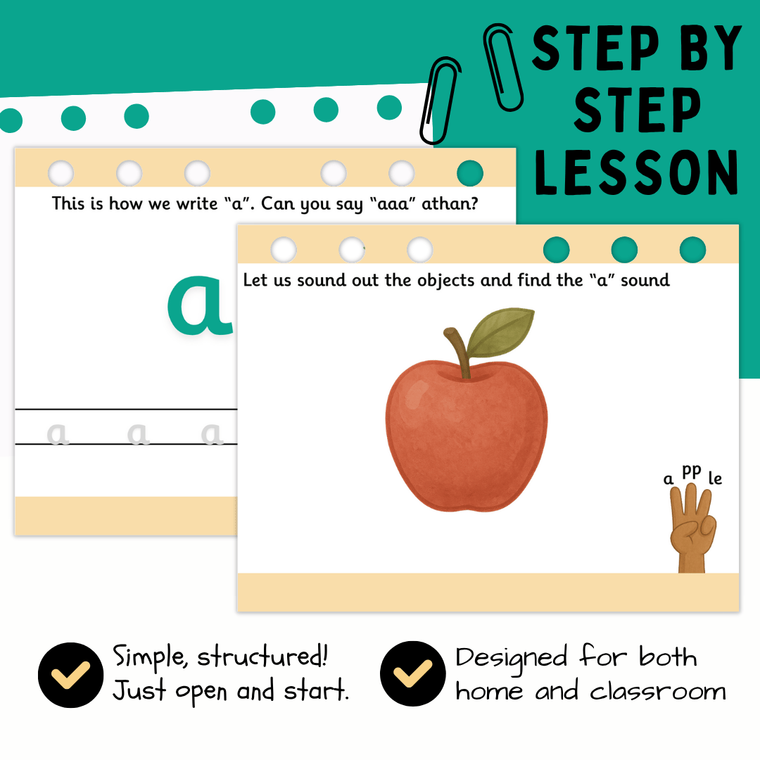 Teaching your child to read doesn’t need to feel overwhelming. This easy-to-follow PowerPoint presentation gives you everything you need to confidently teach the letter “a” even if your child is struggling or you’re not sure where to begin.
