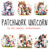 This digital product includes 50 images of Patchwork Unicorn in JPG format, 4096x4096 px size.