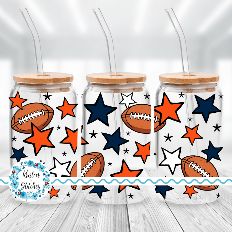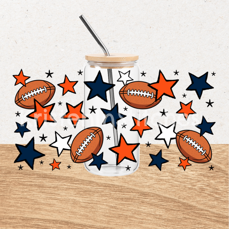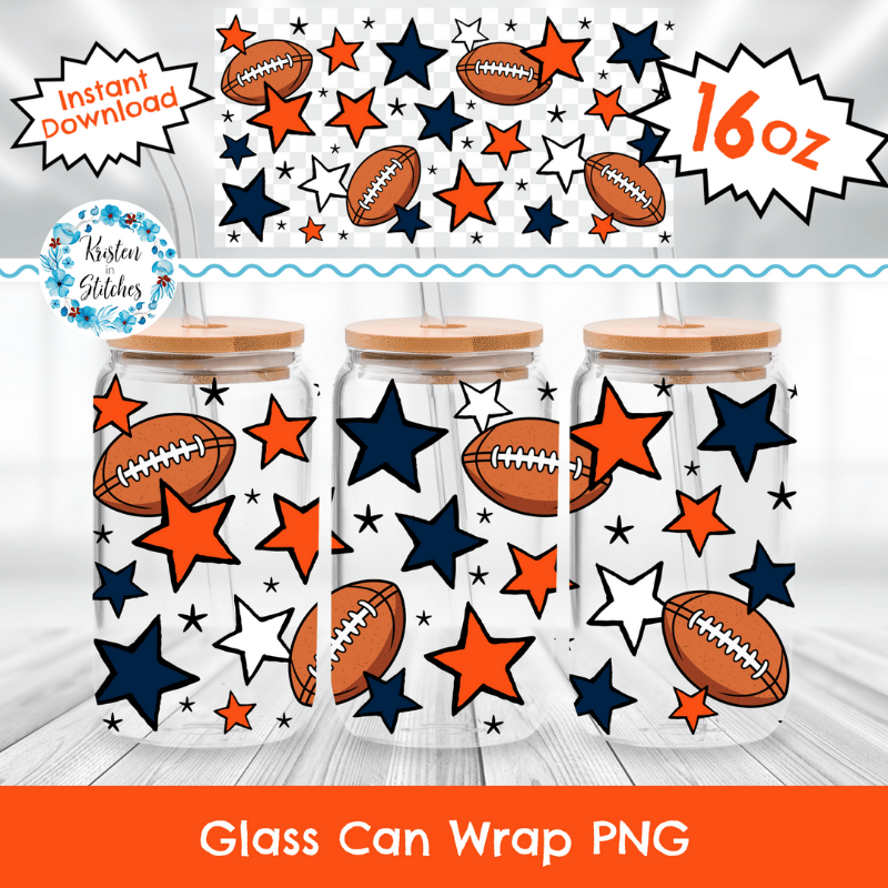 Football Team 16 oz Glass Can Wrap Transparent PNG, Denver Broncos Orange Navy Blue