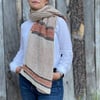The dimensions of the garment allow it to be worn either as a shawl or as a cosy scarf. It can also be worn in reverse, offering two options for the dominant colour.