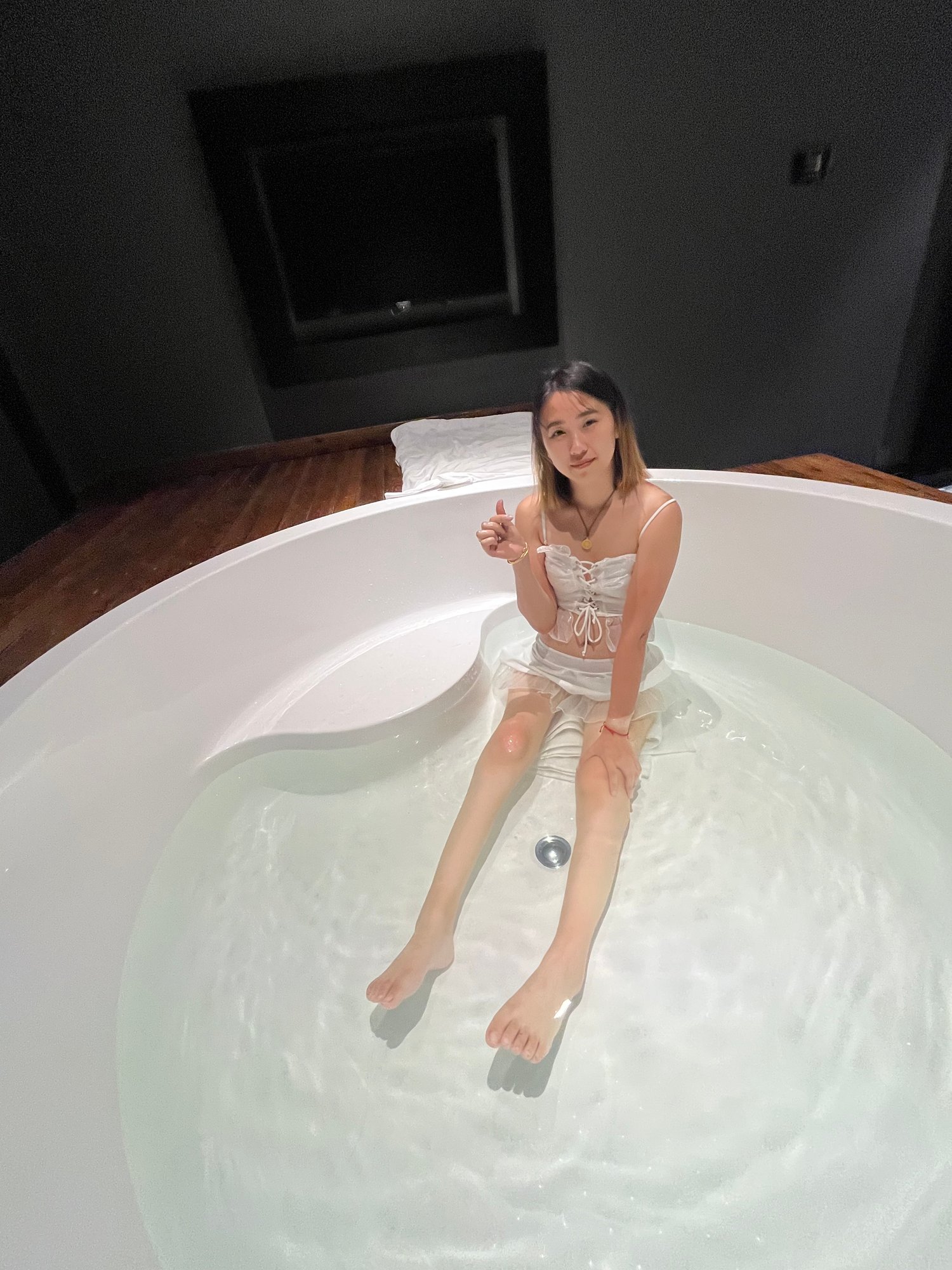 The room was luxuriously furnished with a soft mattress and a huge bathtub.