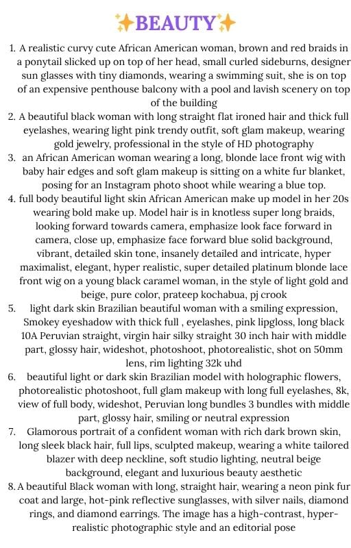 This isn’t basic prompt fluff. It’s a stacked library of detailed, ready-to-use AI prompts designed to help you create eye-catching visuals, scroll-stopping content, and luxury-style branding in minutes. From beauty and fashion to lifestyle, food, and even high-end product aesthetics, everything is already mapped out for you.