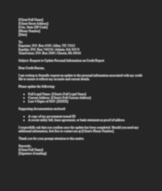 Start your dispute process the right way. This prewritten identity verification letter is ready to go just download, add your personal info, and submit.