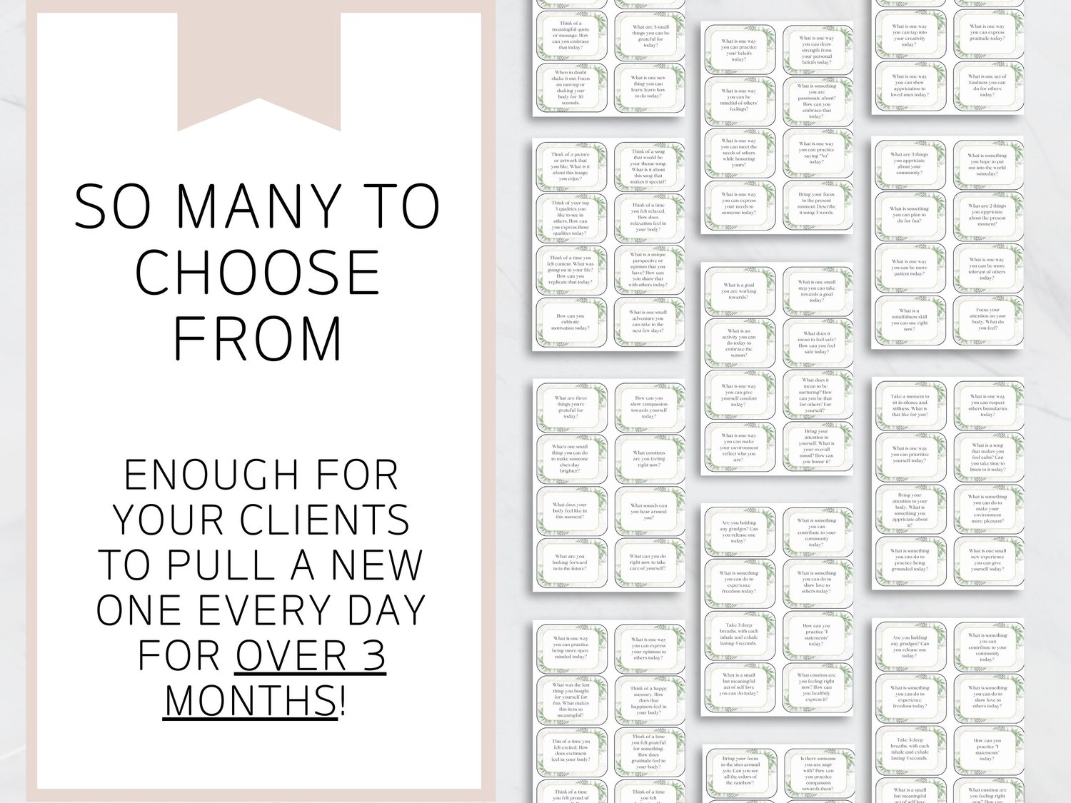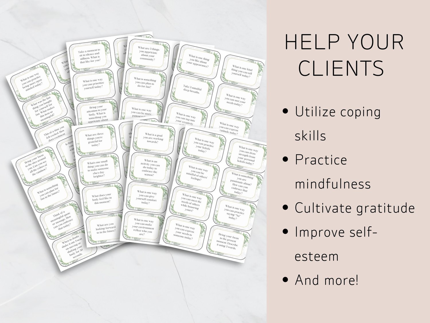Each card includes a unique prompt or exercise that helps them concentrate on mindfulness, practice gratitude, or foster healthy coping mechanisms.