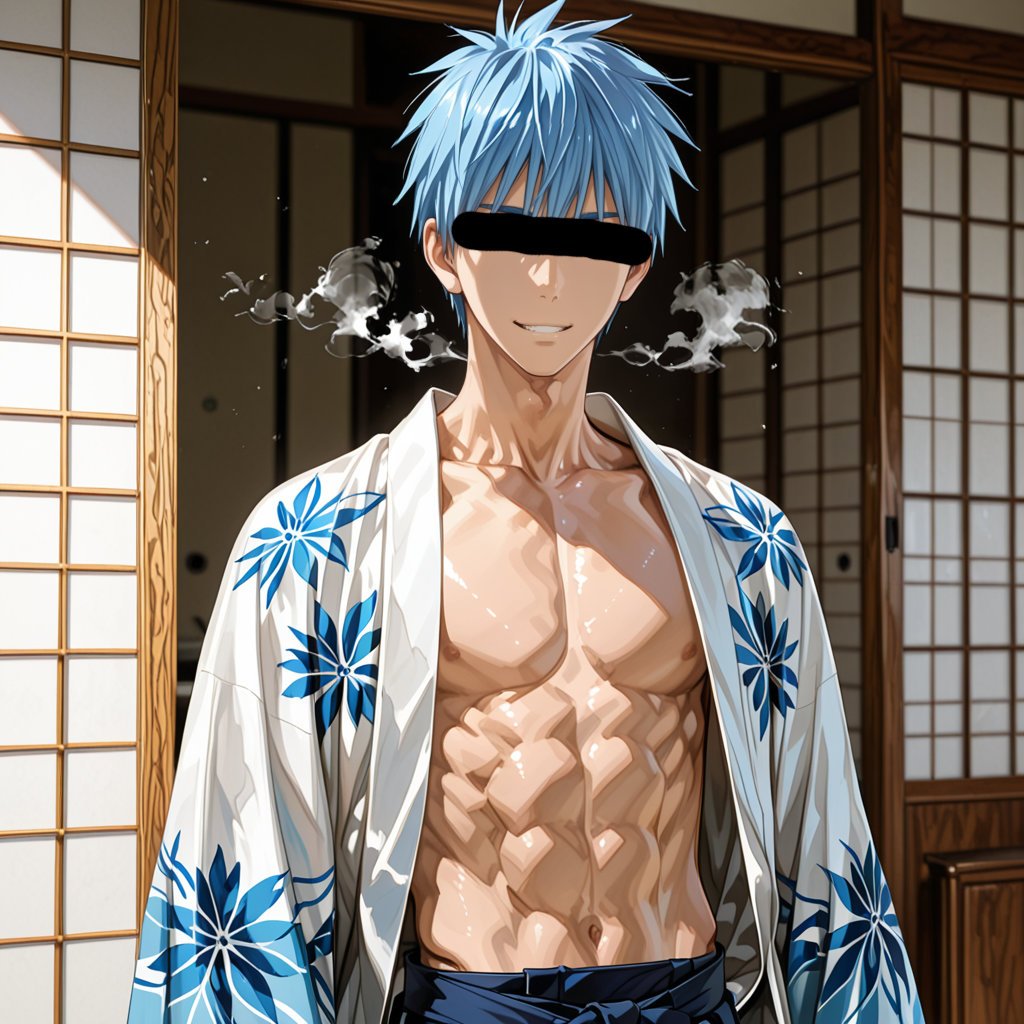 日本の正月をテーマに、着物を着用している男性を、キャラクターごとにお任せ作成しました。男らしいキャラクターの魅力を思い切って表現しました。