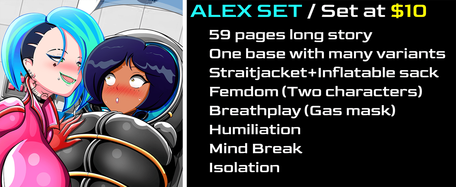 This is an image set of ALEX from Totally Spies. Set in the future, Alex is now a college student. She receive an free session at a very expensive Rubber Spa. But her stay there goes from temporary to a very LONG term affair!