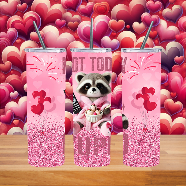 "Not Today Cupid" Raccoon Tumbler – Cozy Valentine’s Day Design
